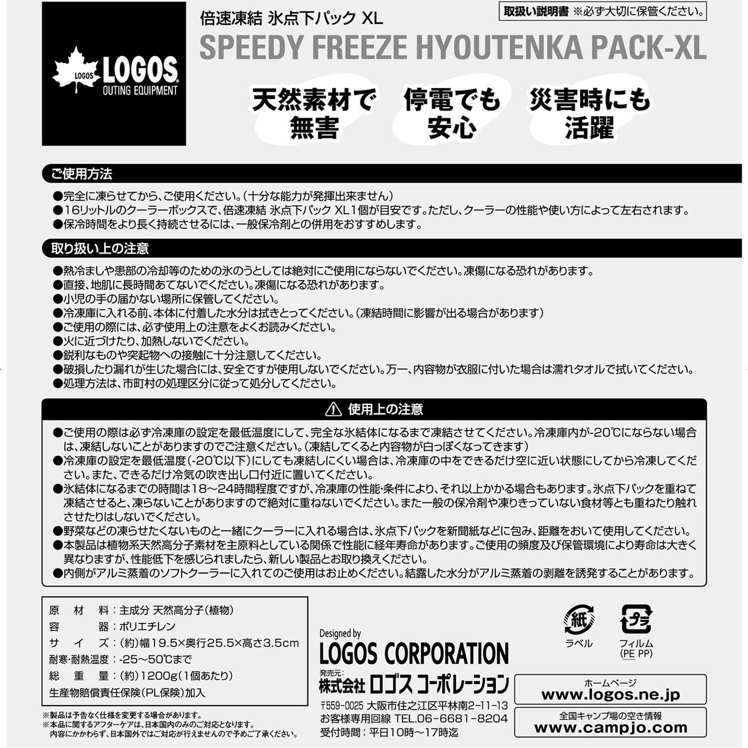 ロゴス(LOGOS) 保冷剤 倍速凍結・氷点下パック 長時間保冷 長時間 防災 日本製