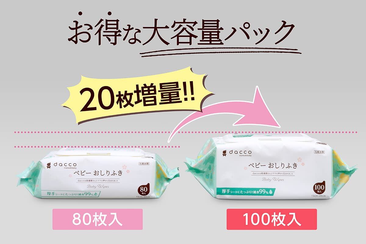 【数量限定】dacco(ダッコ) ベビーおしりふき ふた付 1200枚(100枚入×12個) 大容量 お徳用 厚手シート たっぷり純水99% 84611