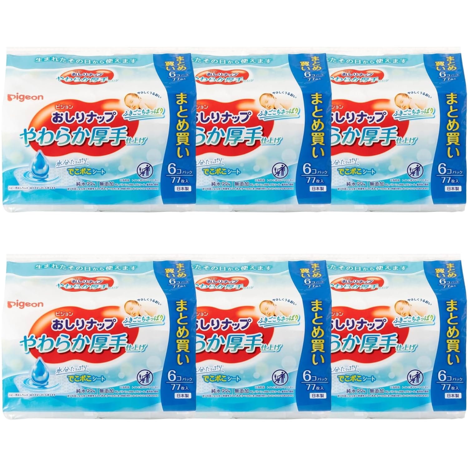 ピジョン おしりナップ やわらか厚手仕上げ 純水99% 77枚入×6コパック + おまけ付き 1ケース(6個セット)