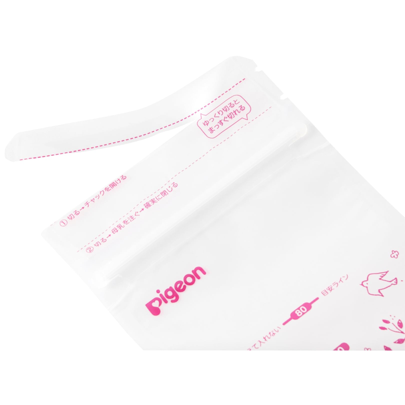パックの開封時、指が触れる部分は切り取れるので、安心して母乳を注ぐことができます。