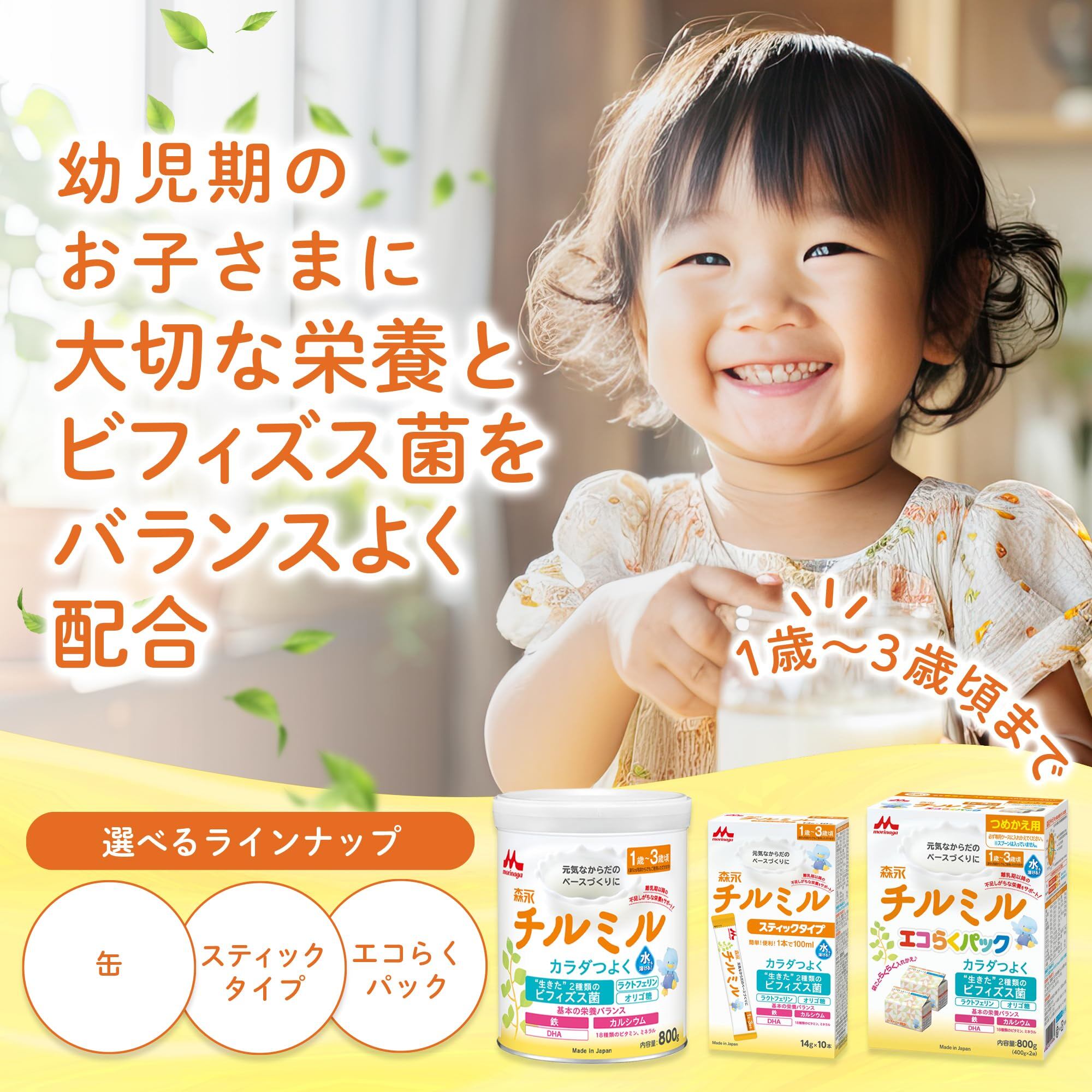 森永 フォローアップミルク チルミル 800g×2缶パック [1歳頃~3歳頃(満9ヶ月頃からでもご使用いただけます) 粉ミルク ビフィズス菌 オリゴ糖 ラクトフェリン]