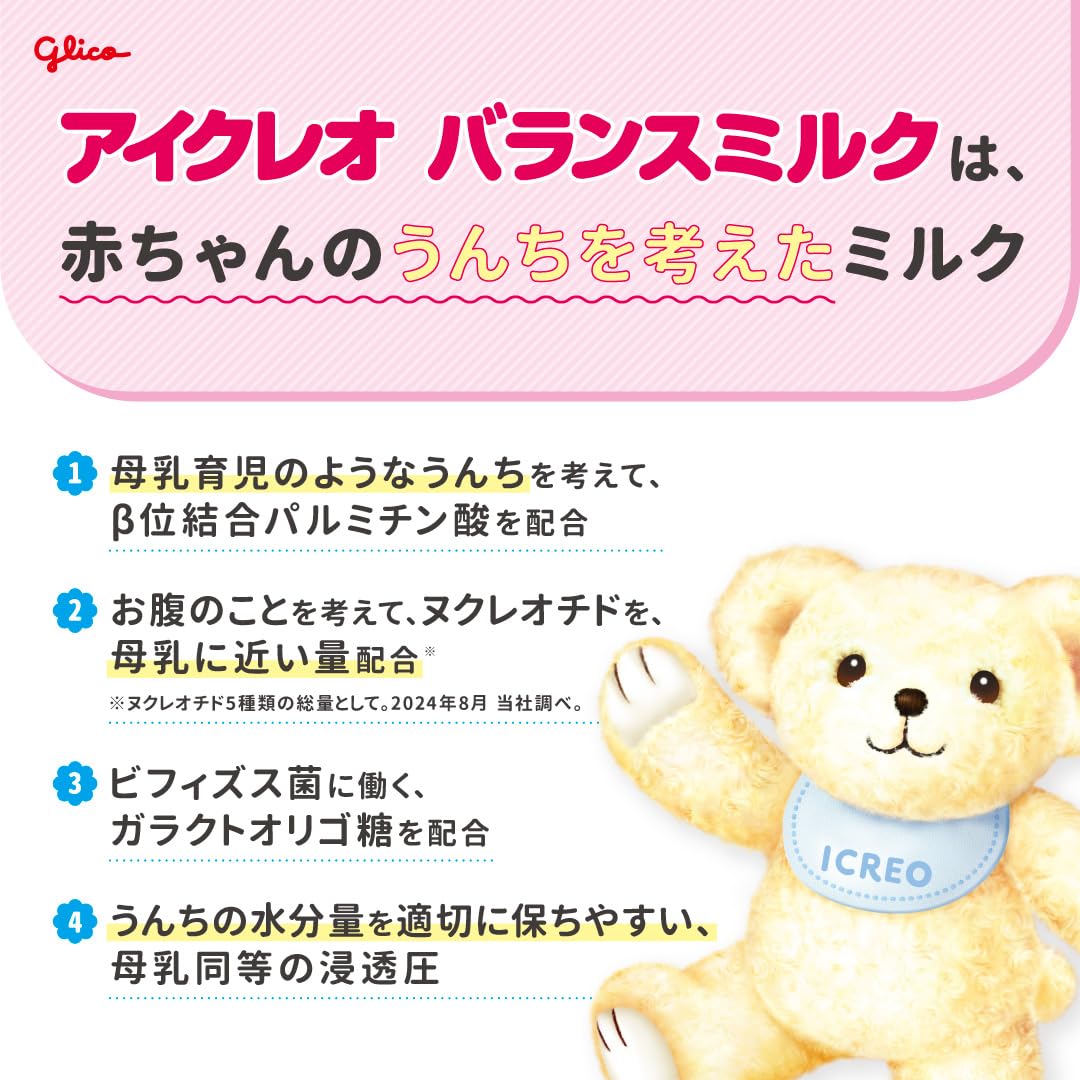 アイクレオ バランスミルクは、母乳をめざし 成分ひとつひとつと原料にこだわった赤ちゃんの繊細な体にやさしいミルクです。母乳に近い栄養成分バランス 母乳に近い栄養成分