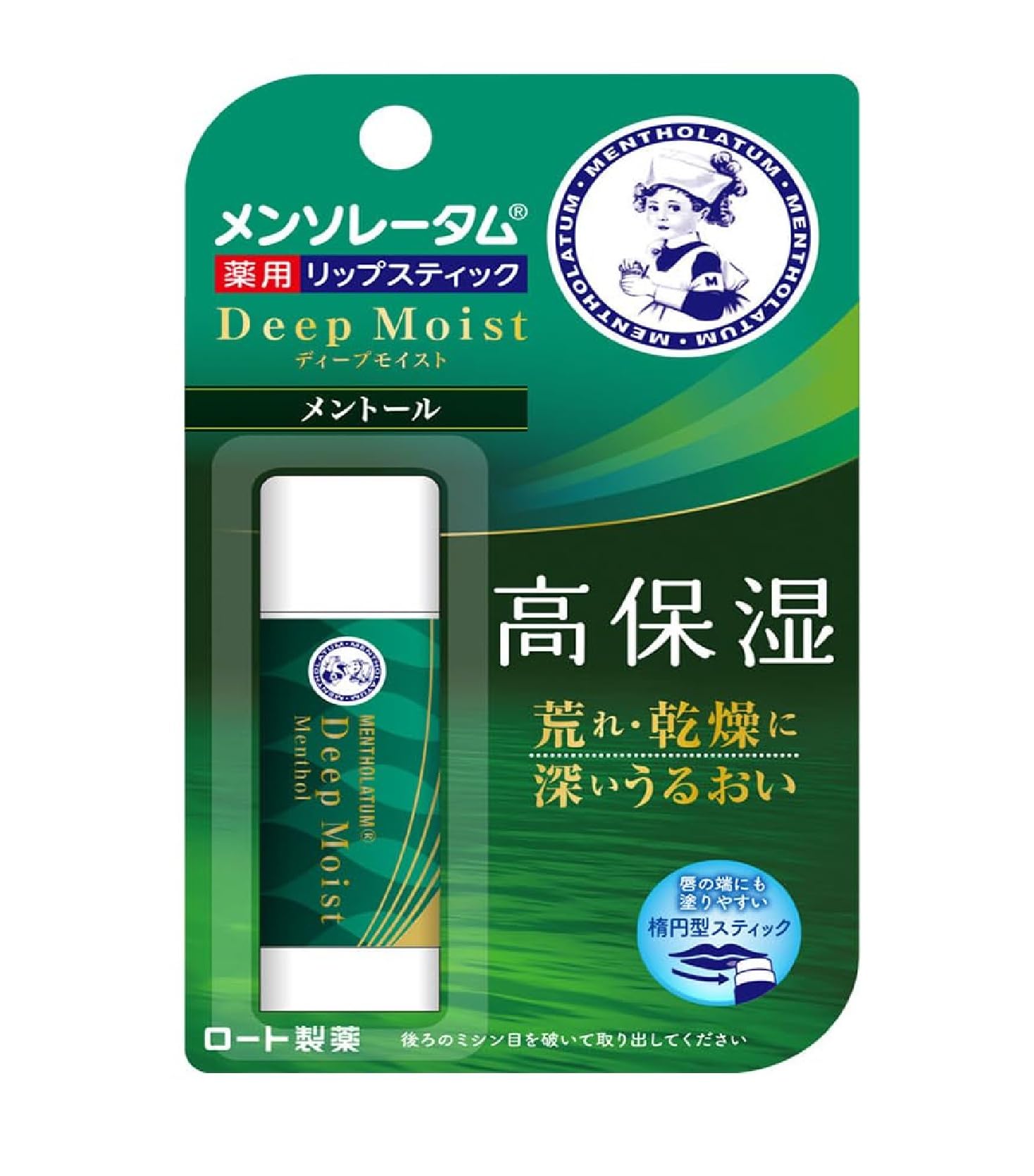 「メンソレータムディープモイスト(メントール)」は、ヒアルロン酸、シアバター、ホホバオイル(うるおい成分)配合の“高保湿”リップクリーム。有効成分ビタミンE誘導体が、唇の荒れ・ひび割れを防ぎ、健やかに整えます。唇の端にもフィットしやすい楕円型容器を採用し、やわらかいリップクリームなので、唇に軽くすべらせるだけでたっぷりと塗ることが出来ます。唇に爽快感を与えるメントールタイプです。