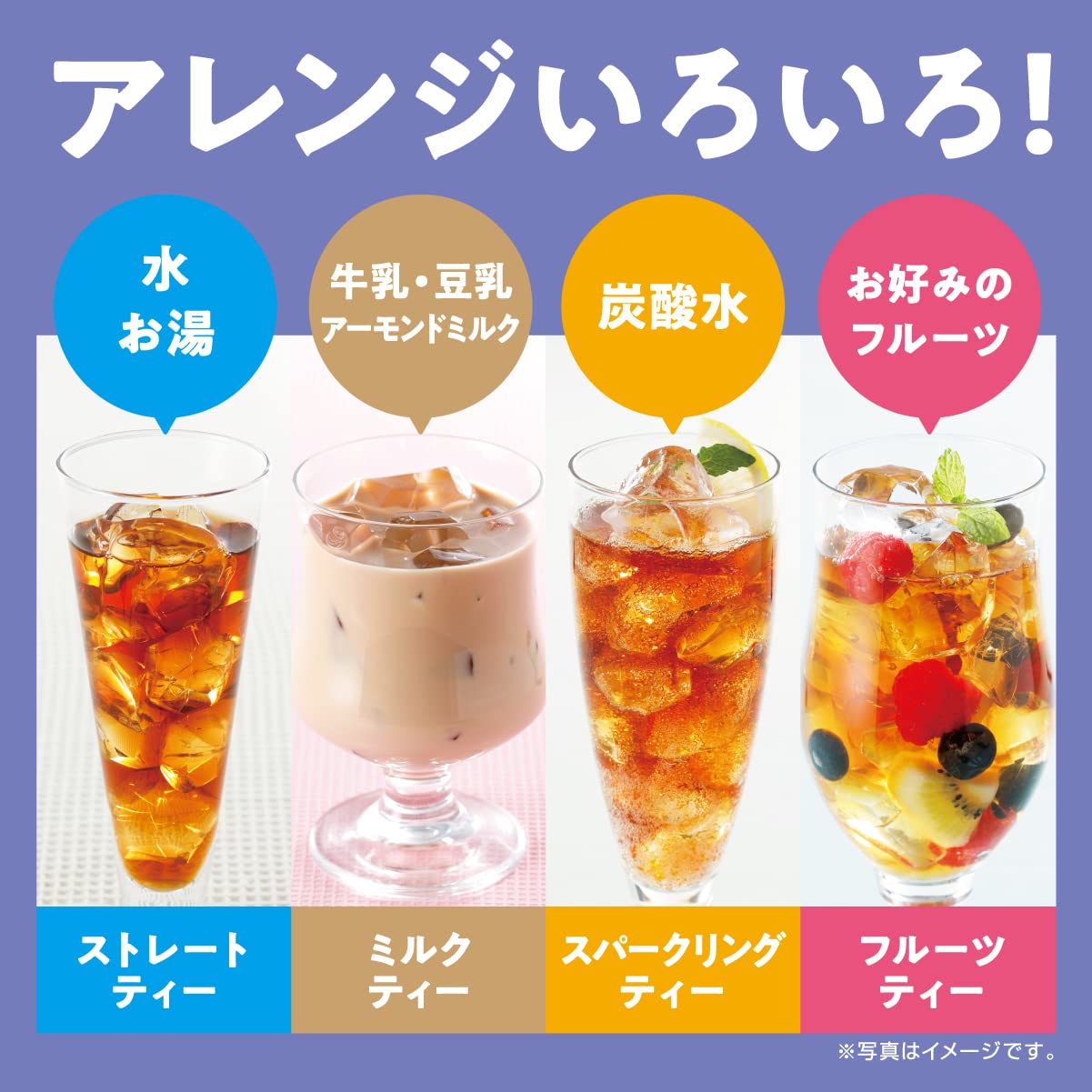 使用方法:7~9倍に薄めてお飲みください。1.「ブレンディ」ポーションティーを入れます。2.冷たい牛乳か水を150ml注ぎ、よくかき混ぜてお召し上がりください。