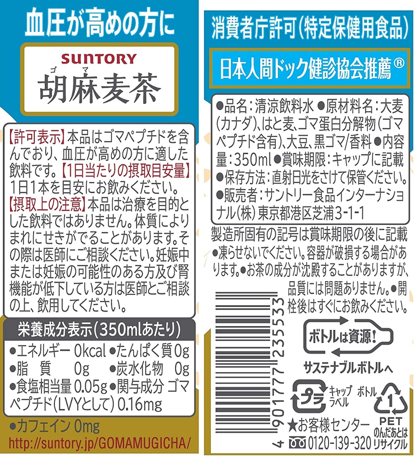 【数量限定】[トクホ] サントリー 胡麻麦茶350m×12本 秋 ギフト