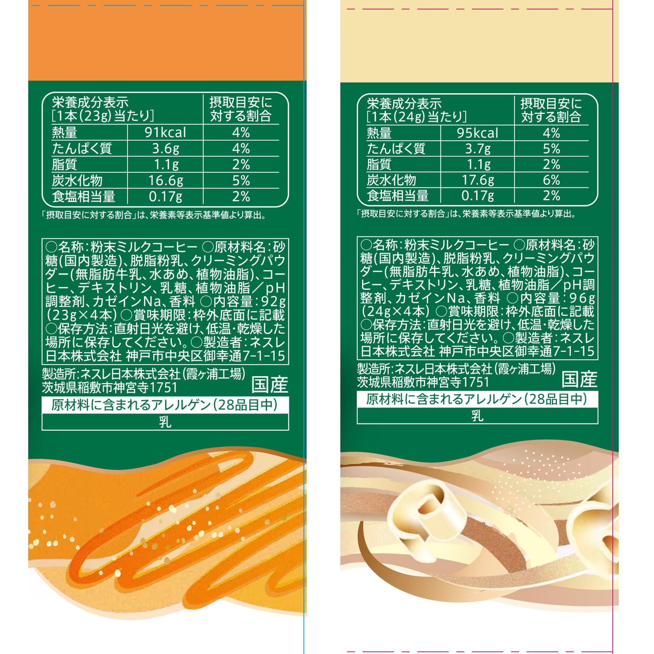 【カフェ ラテ】クリーミングパウダー(無脂肪牛乳、水あめ、植物油脂)(スペイン製造)、脱脂粉乳、砂糖、コーヒー、デキストリン、乳糖、食塩、植物油脂/pH調整剤、カゼインNa、香料【キャラメル ラテ】砂糖(国内製造)、脱脂粉乳、クリーミングパウダー(無脂肪牛乳、水あめ、植物油脂)、コーヒー、デキストリン、乳糖、植物油脂/pH調整剤、カゼインNa、香料【抹茶 ラテ】砂糖(国内製造)、脱脂粉乳、クリーミングパウダー(無脂肪牛乳、水あめ、植物油脂)、抹茶、デキストリン、乳糖、植物油脂/pH調整剤、カゼインNa【カフェ モカ】脱脂粉乳(国内製造)、砂糖、ココアパウダー(ココアバター10〜12%)、クリーミングパウダー(無脂肪牛乳、水あめ、植物油脂)、コーヒー、デキストリン、乳糖、食塩、植物油脂/カゼインNa、pH調整剤、香料【ホワイト モカ】砂糖(国内製造)、脱脂粉乳、クリーミングパウダー(無脂肪牛乳、水あめ、植物油脂)、コーヒー、デキストリン、乳糖、植物油脂/pH調整剤、カゼインNa、香料