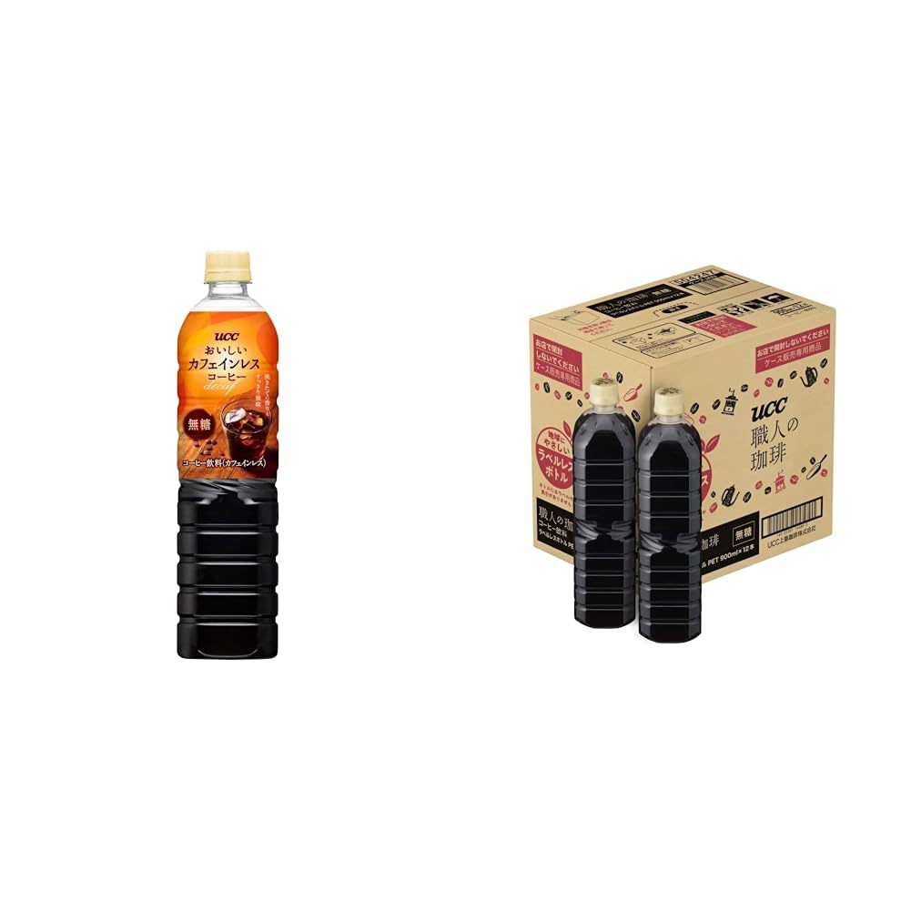 【セット買い】UCC おいしいカフェインレスコーヒー 無糖 ペットボトル コーヒー 900ml×12本 + UCC 職人の珈琲 無糖 ラベルレスボトル ペットボトル 900mlx12本