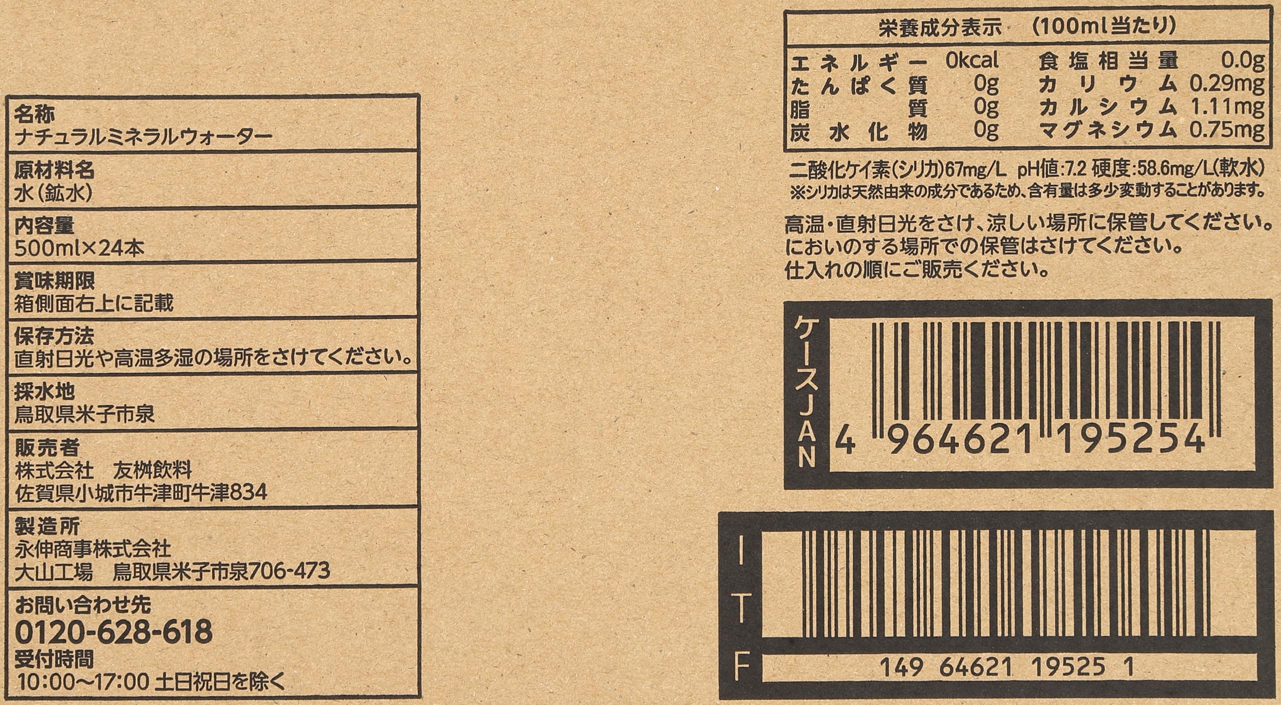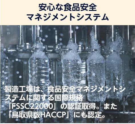 名水の宝庫「鳥取・大山山麓」で採水したナチュラルミネラルウォーター。美容・健康で注目の成分「天然シリカ」も含まれた「シリカ水」です。シリカ(二酸化ケイ素)は人間のカラダに必須のミネラルであるケイ素の化合物。カラダにとって重要な役割を果たし、注目されている成分のひとつです。味わいは柔らかく飲みやすい軟水の天然水。鳥取県の大山(だいせん)は、類まれなる保水力を持つブナ林が生い茂っています。その麓で採水し、そのままボトリング。口当たりやさしい軟水で毎日の水分補給とシリカ補給にピッタリです。