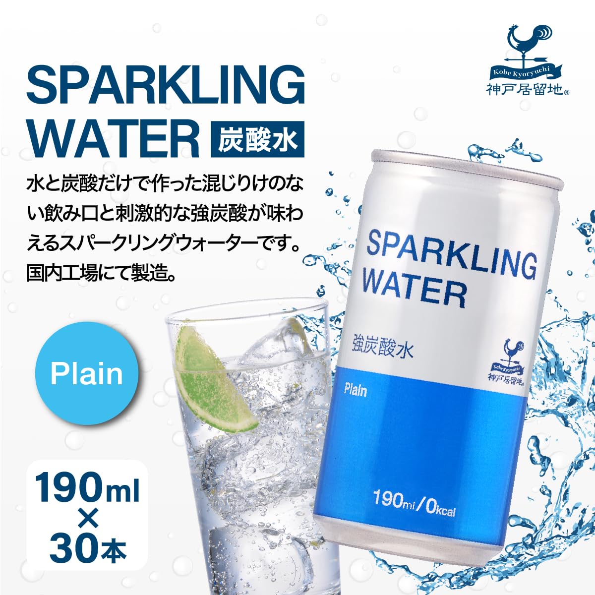 【数量限定】神戸居留地 強炭酸水 190ml 30本 缶 無糖 割材 スパークリングウォーター 飲みきり サイズ 業務用 ハイボールに 炭酸水 ソーダ