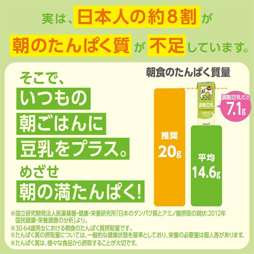 キッコーマンの調製豆乳は品質と鮮度にこだわり大豆の微量栄養成分をより多く抽出し大豆臭の少ない、おいしい味に仕上げています。