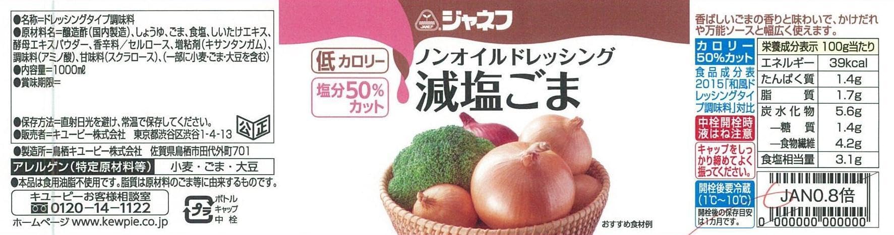キユーピー 業務用 ドレッシング ジャネフ ノンオイルドレッシング 減塩ごま 1L