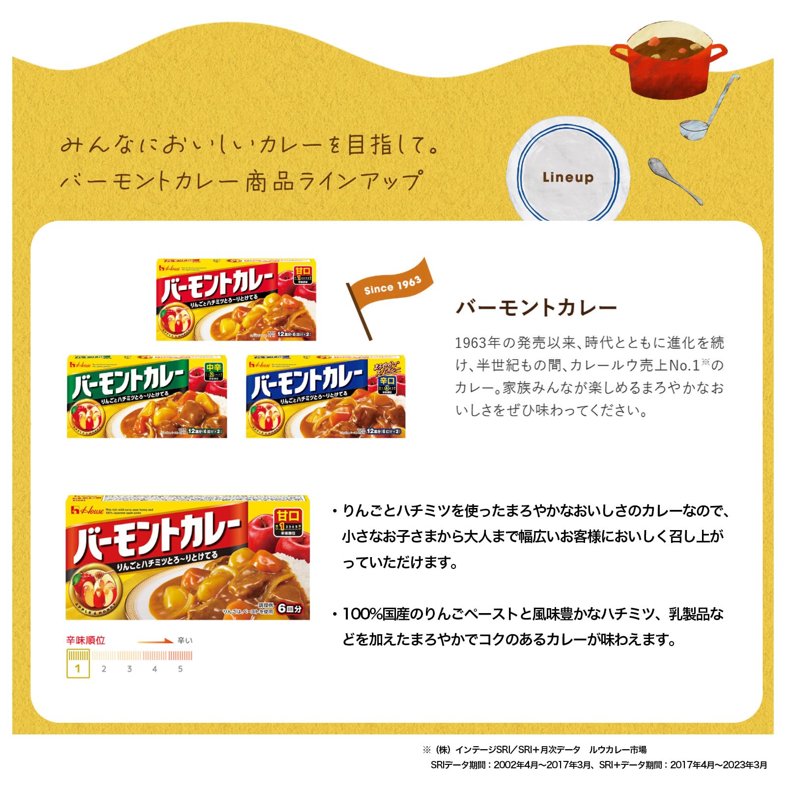・リンゴとハチミツを使ったまろやかなおいしさのカレーなので、小さなお子さまから大人まで幅広いお客さまにおいしく召し上がっていただけます。 ・アメリカのバーモント州に伝わるりんごとハチミツの健康法を応用したカレー・マイルドなスパイスの風味が特徴のカレーパウダーがベース・100%国産のりんごペーストと風味豊かなハチミツ、乳製品などを加えたまろやかでコクのあるカレー