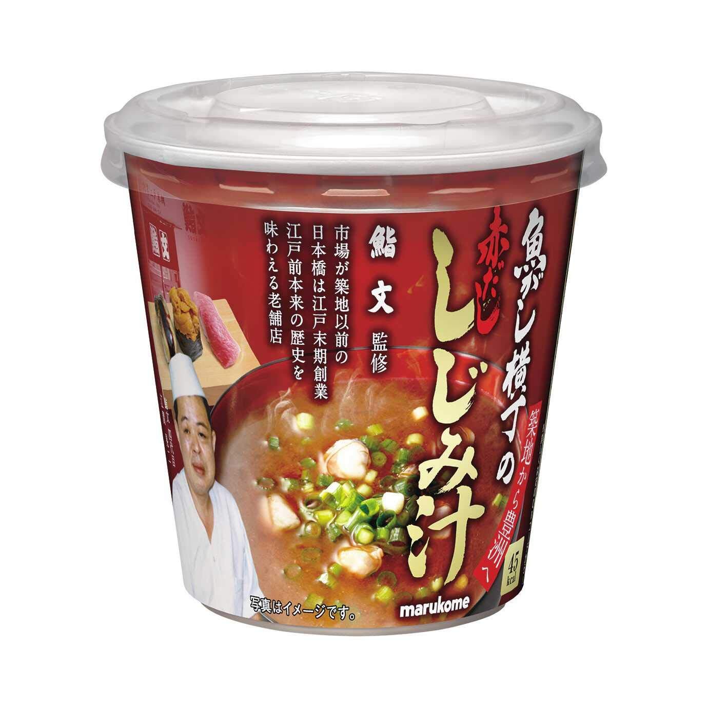 カップ入りの築地魚がし横丁の貝だしみそ汁。築地市場内の人気寿司店「鮨文」監修商品です。