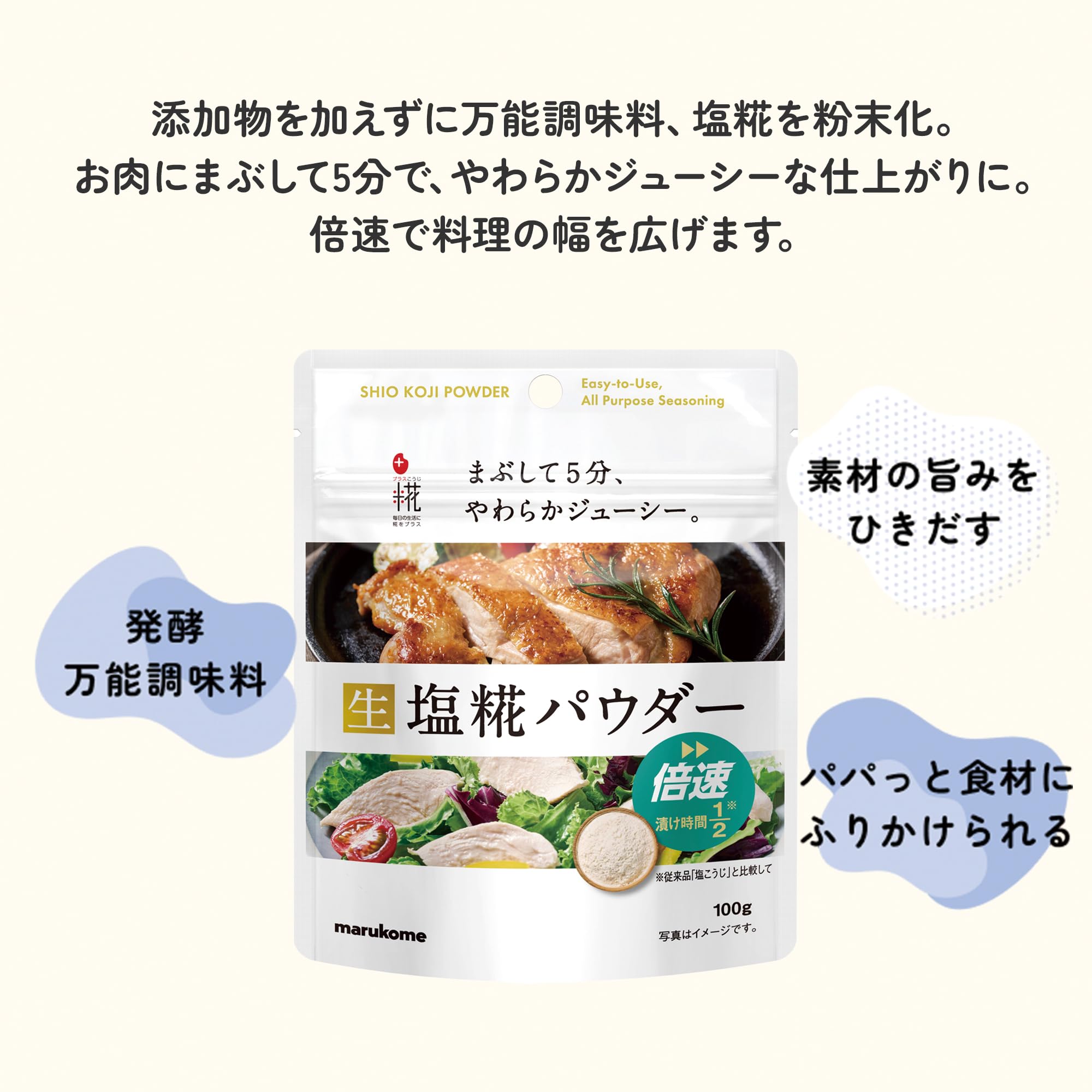 万能調味料の生塩糀を、さらに使いやすくしたパウダータイプです。