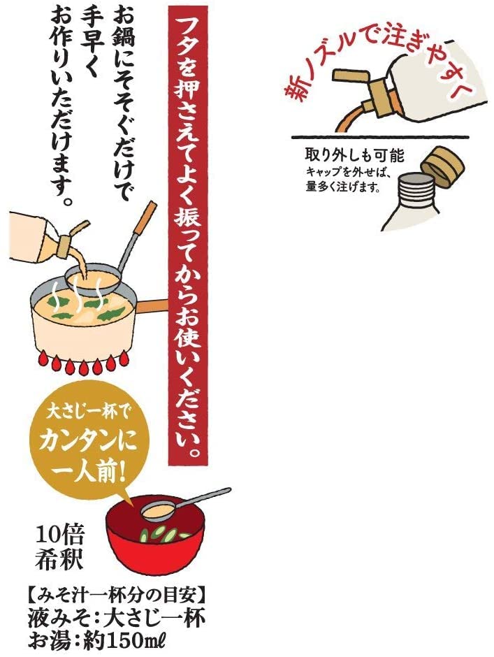 【液みそ】「家事に仕事に忙しい主婦のお役にもっと立ちたい」。そんな思いから生まれた、「液みそ」は、振って、注いで、混ぜるだけ。サッと注いですぐ溶ける 。