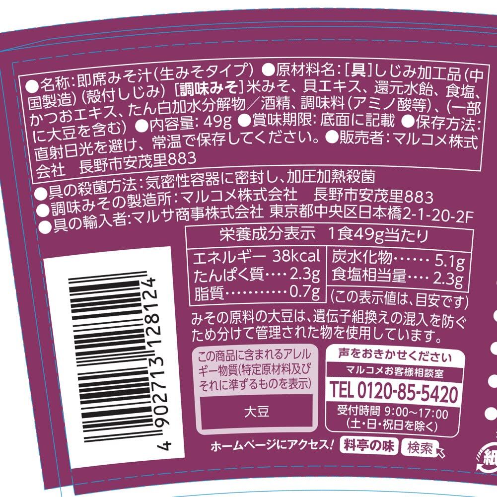 [具]しじみ加工品(中国製造)(殻付しじみ)[調味みそ]米みそ、貝エキス、還元水飴、食塩、かつおエキス、たん白加水分解物/酒精、調味料(アミノ酸等)、(一部に大豆を含む)