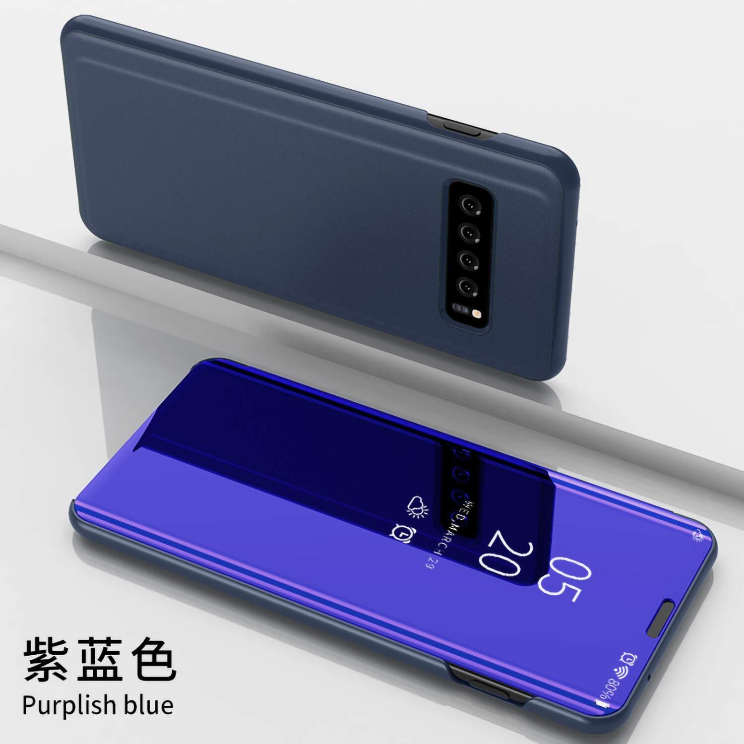 【人気商品】携帯スマホケース【Galaxy S10専用】薄型 ミラー メッキ 可愛い 面白い 透明 窓 キラキラ スタンド機能 カバー おしゃれ キャラクター レンズ保護 手帳型 PUレザー ワイヤレス充電 磁気防止 かわいい 人気 落下防止 マグネット 財布型 全面保護 指紋防止 耐衝撃 beautycatcher - 青