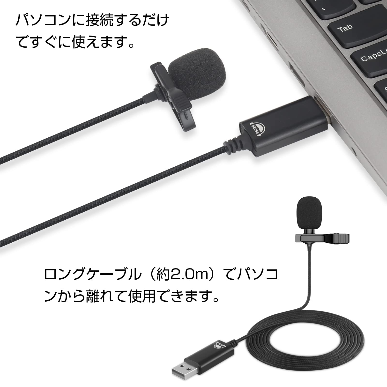 okcsc MC2U ピンマイク クリップマイク マイクロホン 録音 全指向性 PC/スマホ用 Zoom 会議 テレワーク カラオケ YouTubeなど対応 約2.0m USB