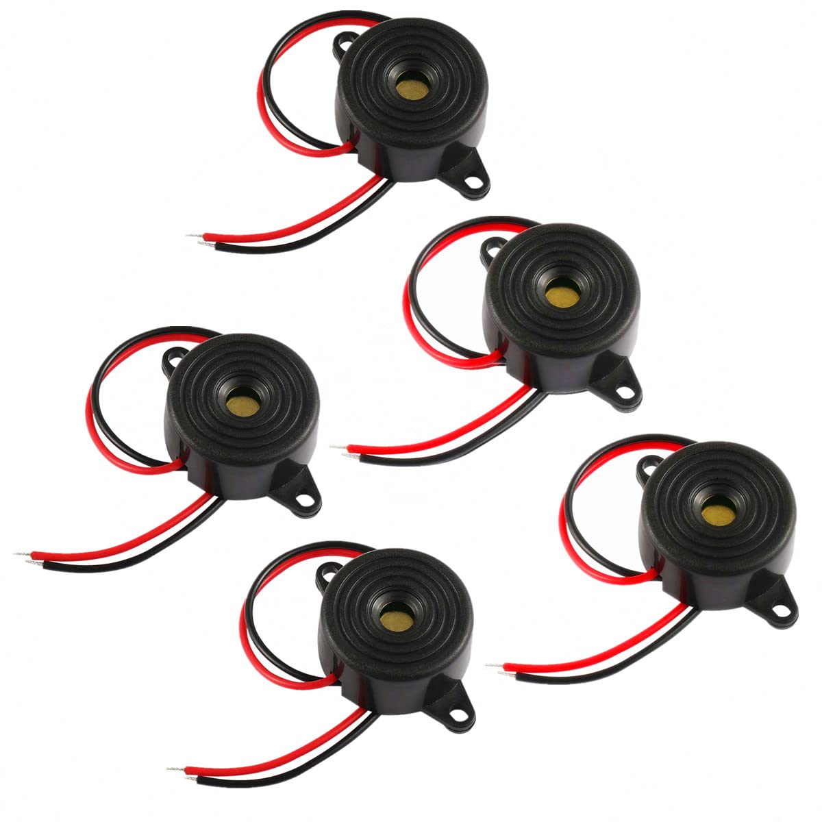 電子ブザー アラーム 5個入 DC 3-24V 円形75-85dB 連続音 2ケーブル ブラック