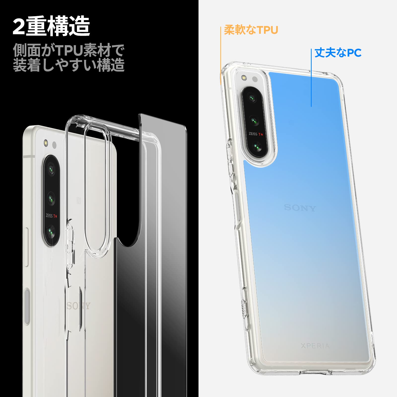 Spigen Xperia 5 IV ケース クリア [ SO-54C | SOG09 | A204SO ] ストラップ ホール付き クリア TPU バンパーケース 2重構造 米軍MIL規格取得 耐衝撃 指紋防止 すり傷防止 黄ばみ無し ワイヤレス充電対応 ウルトラ・ハイブリッド ACS04597 (クリスタル・クリア)