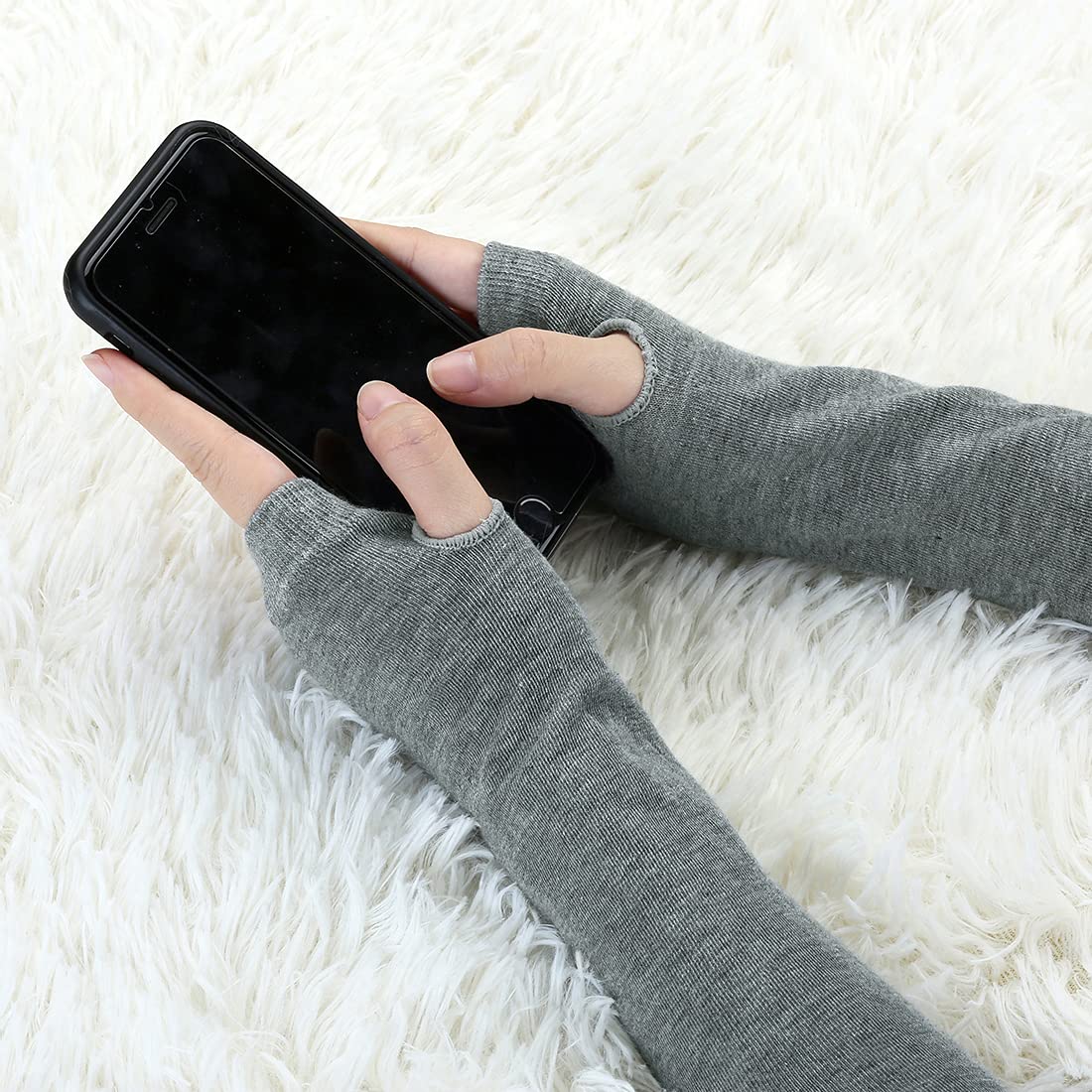 【新着商品】[uxcell] アームウォーマー 指なし グローブ 女性 暖かい 防寒 弾性 グレー