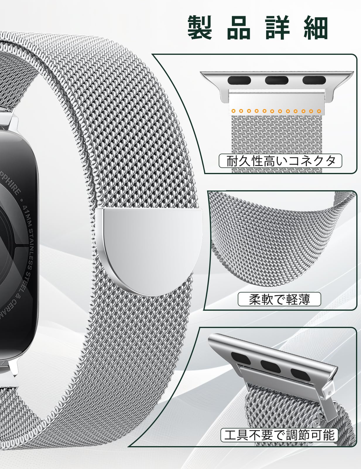【数量限定】EPULY コンパチブル アップルウォッチバンド 49mm 46mm 45mm 44mm 42mm 41mm 40mm 38mm Apple Watch用のバンド マグネットクラスプ ステンレス鋼 メッシュ 通気 男女兼用 長さ調節 Watch Series 11 10 9 8 7 6 5 4 SE3 SE2 Ultra 3 に対応