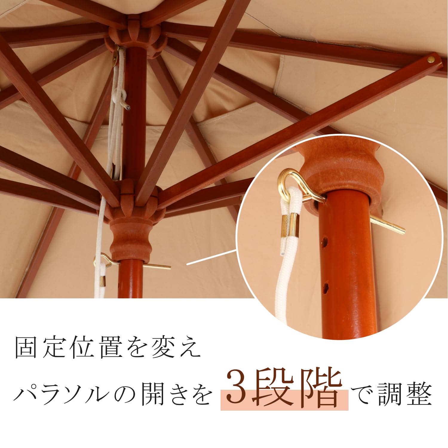 不二貿易 パラソル ガーデン 幅 193×奥行193×高さ222㎝ アイボリー 日除け 木製 天然木 直径210cm 60157