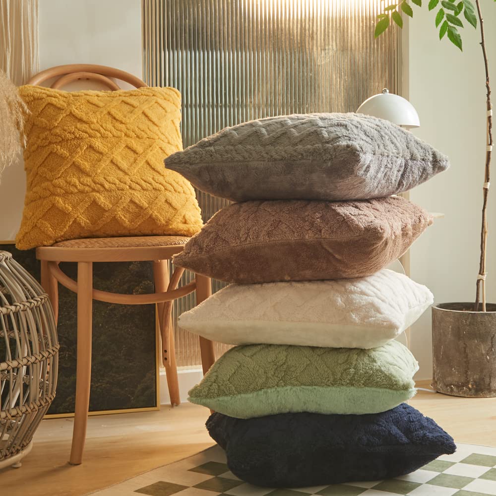 YunJeude クッションカバー 45x45cm 北欧 2枚セット フェイクファー フワフワ 立体的 幾何学模様 おしゃれ 可愛い 柔らかい モダン エレガント ファスナー 家庭装飾 車 飾り インテリア ベッドルーム (45x45, アイボリー)