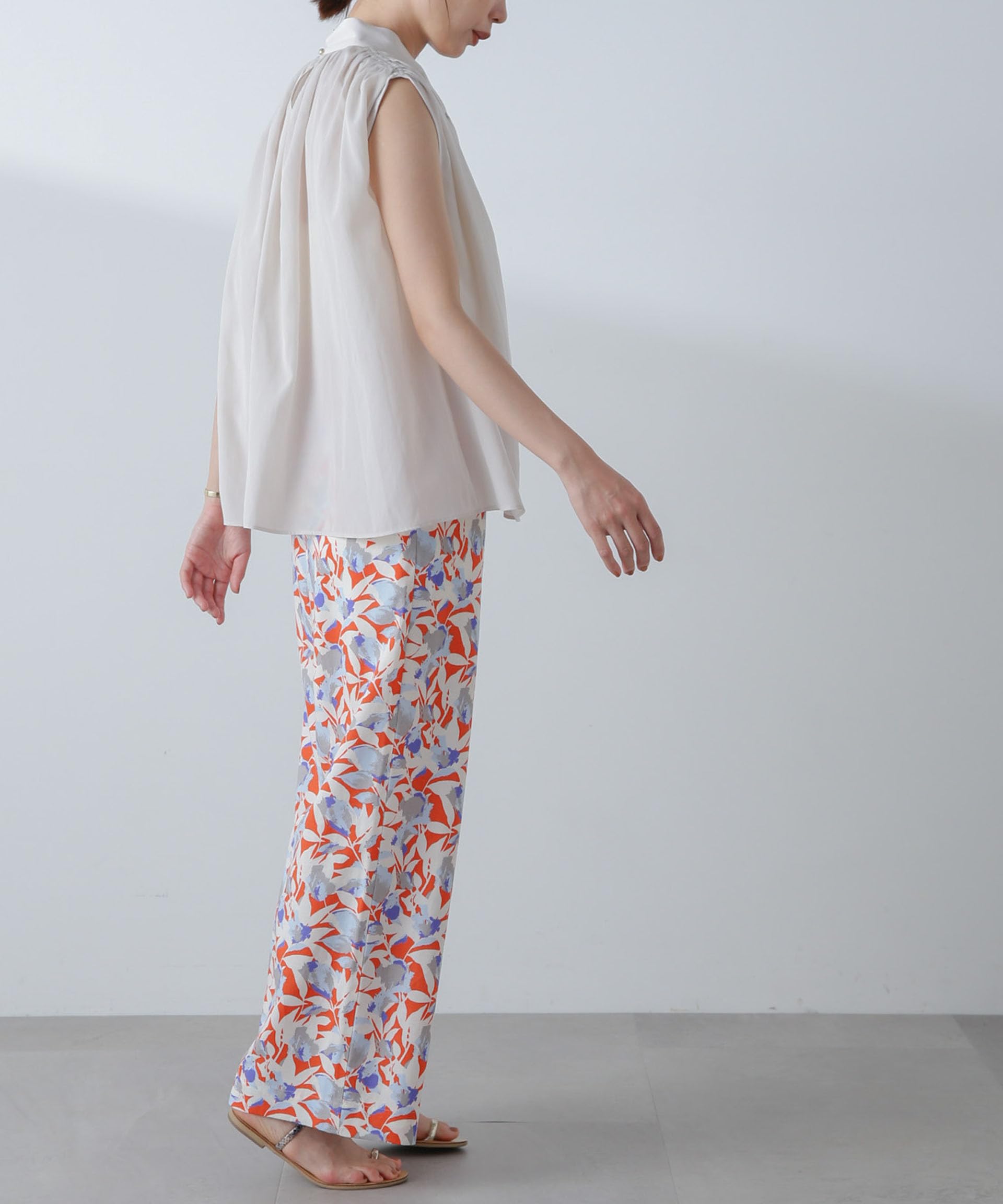 [ナノ・ユニバース] ショルダーギャザーボウタイブラウス