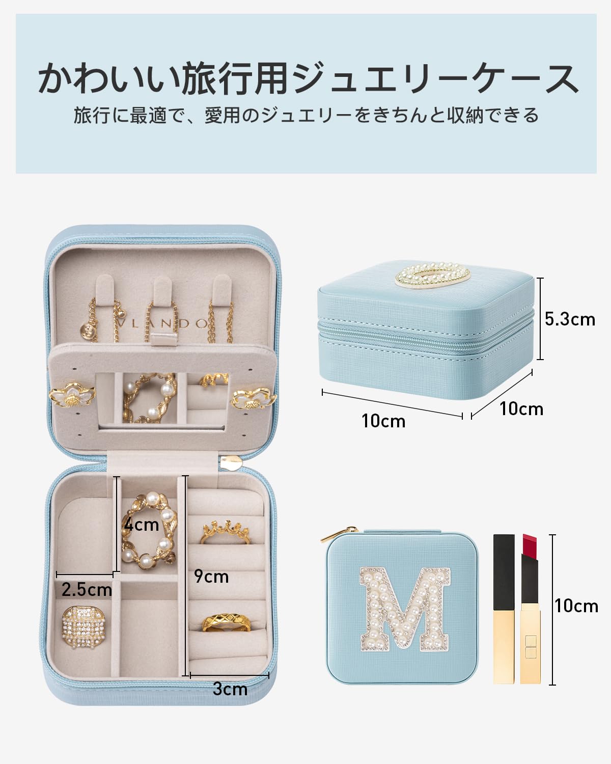【特価商品】Vlando 誕生日プレゼント女性 ジュエリーボックス 名前入り プレゼント 携帯用 鏡付き ジュエリーボックス トラベル 結婚祝い プレゼント 記念日 バレンタイン 退職 祝い 贈り物(ブルーM)