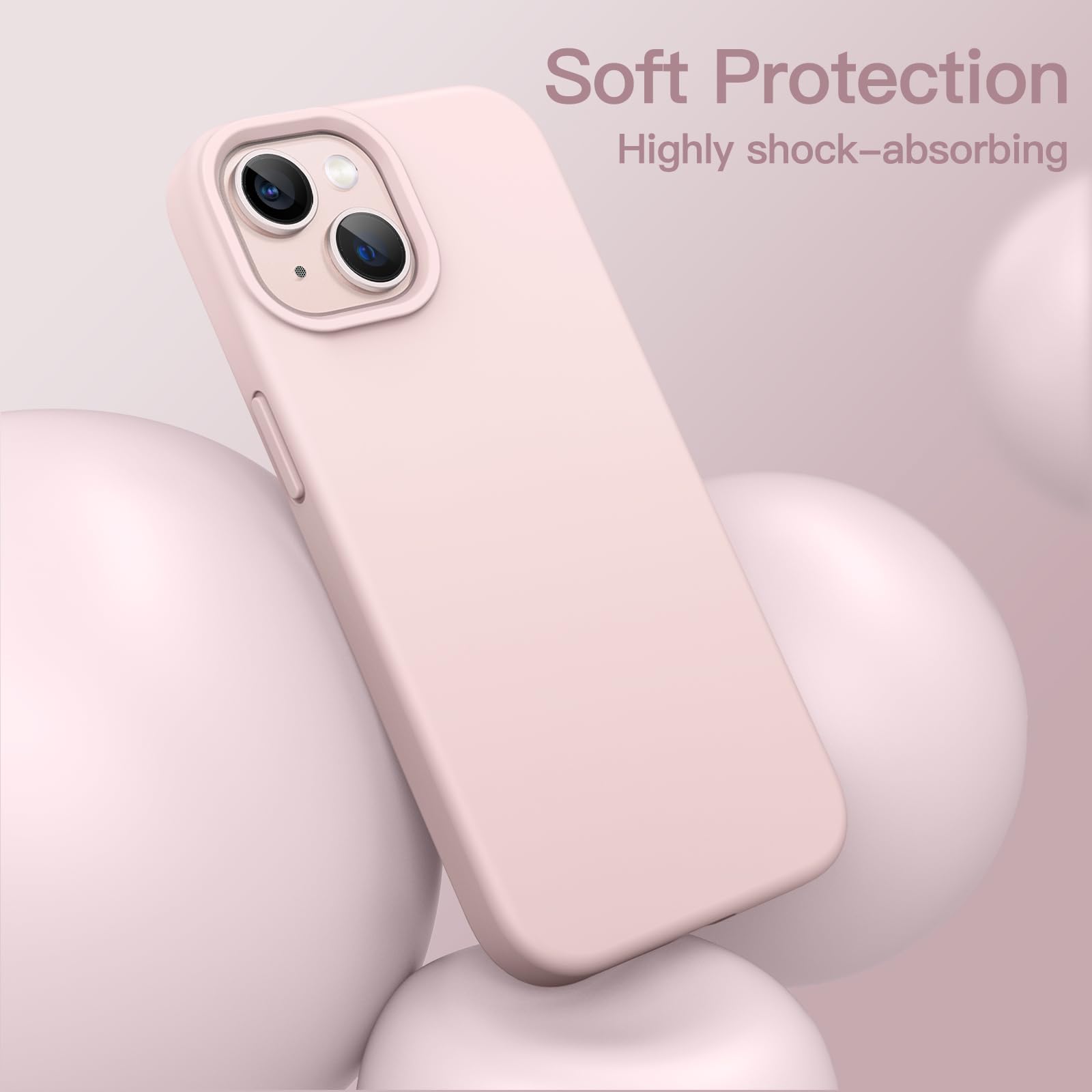 JETech iPhone13 シリコンケース(6.1インチ専用) シルキーソフトタッチフルボディ保護ケース マイクロファイバーライニング付き耐衝撃カバー (ピンク)