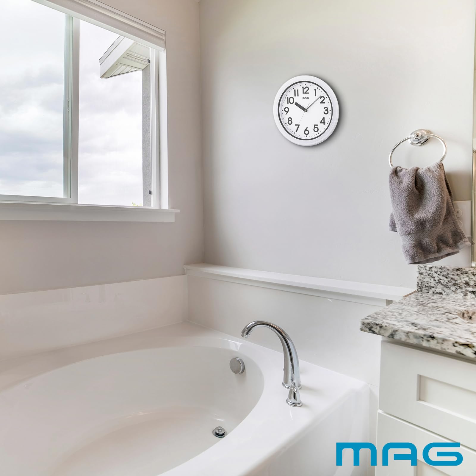 MAG(マグ) 掛け時計 壁掛け時計 アナログ 防水 防塵 厨房 水回り 工場 脱衣所 風呂 ガレージ IP67 プラスチック 静音 連続秒針 直径27.8㎝ ホワイト プラデガード W-800A WH-Z ノア精密