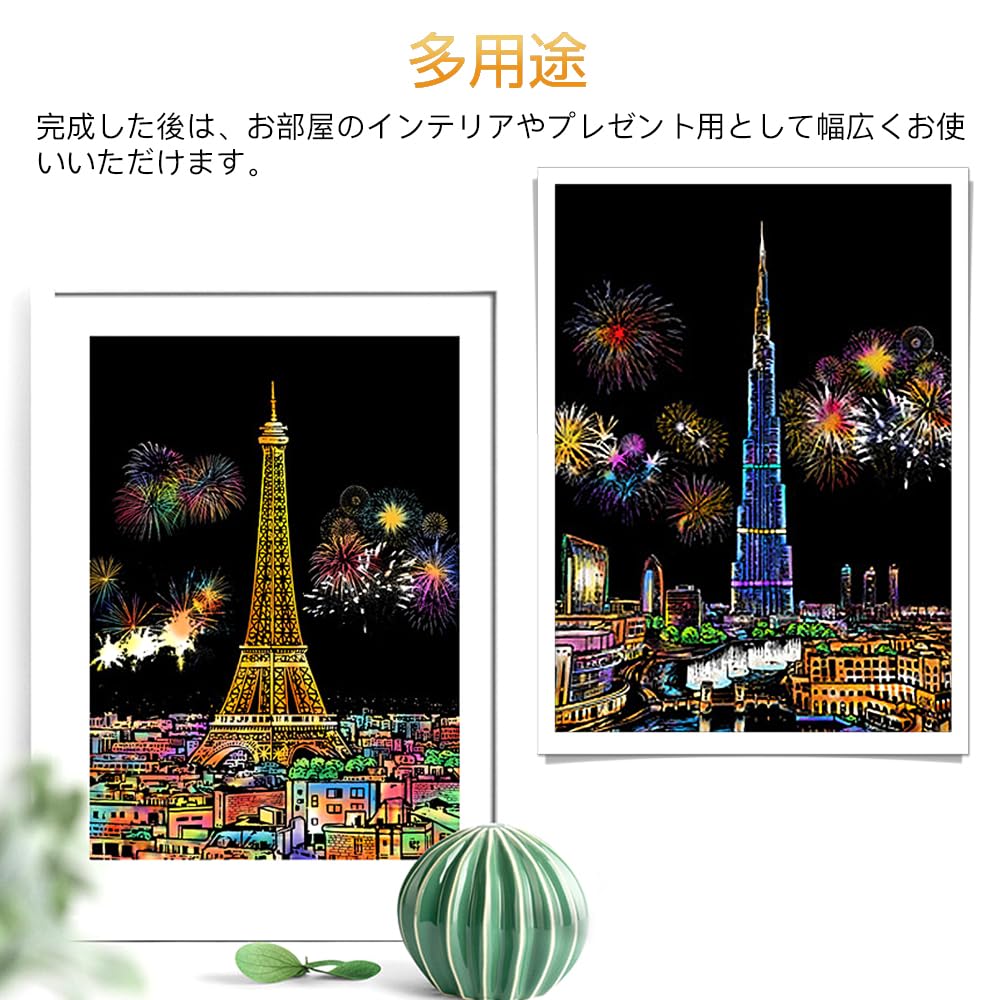 【多用途】完成したスクラッチペーパーは額縁に入れて壁に飾ったり、机の上に置いたりすることができます。
