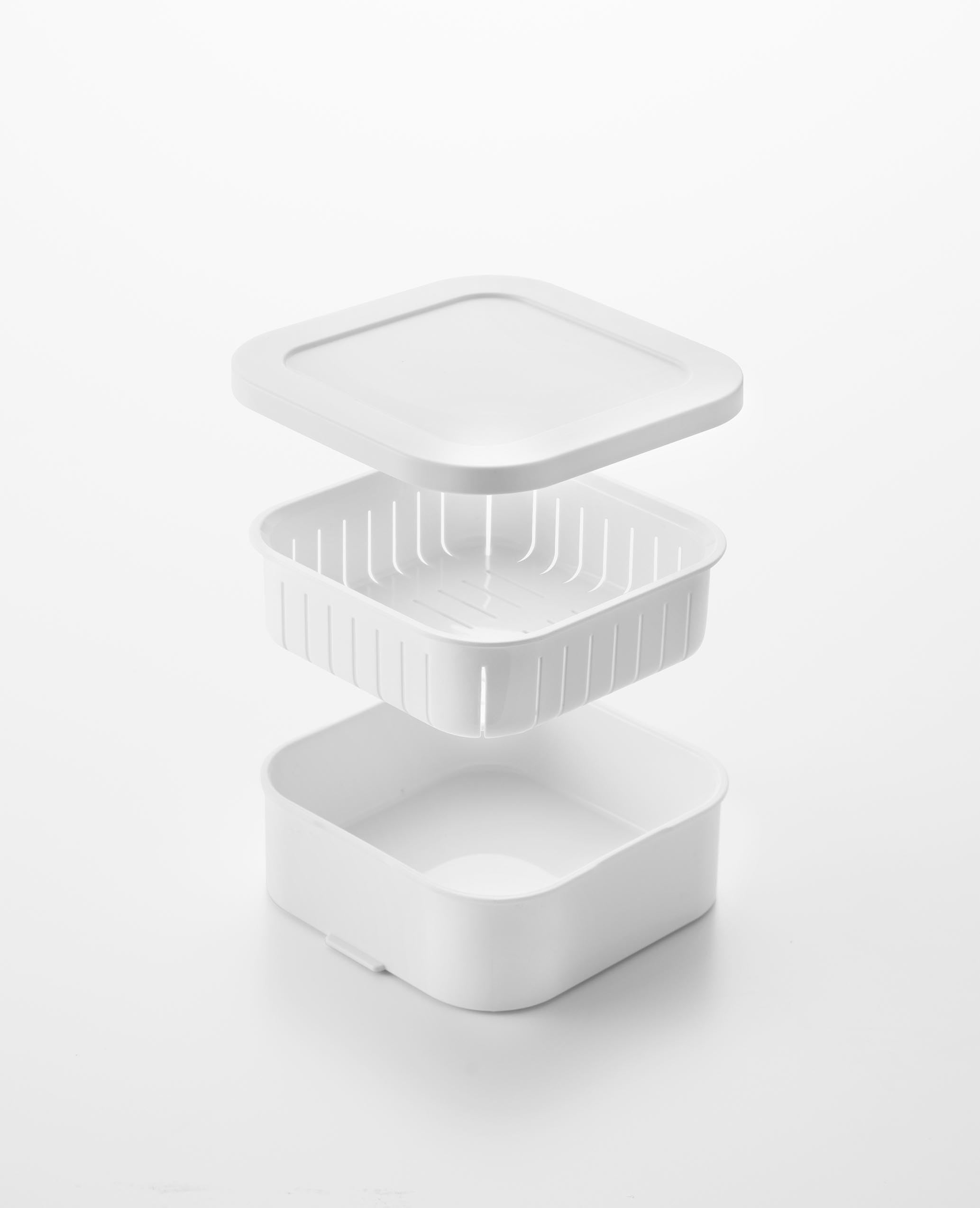 【特価セール】山崎実業(Yamazaki) 冷凍ごはん容器 & バルブ付き 密閉 ランチボックス セット ホワイト W12.2×D12.2×H8.8cm(2段) タワー tower 食洗機・電子レンジ・冷凍庫対応 弁当箱 2段 1365
