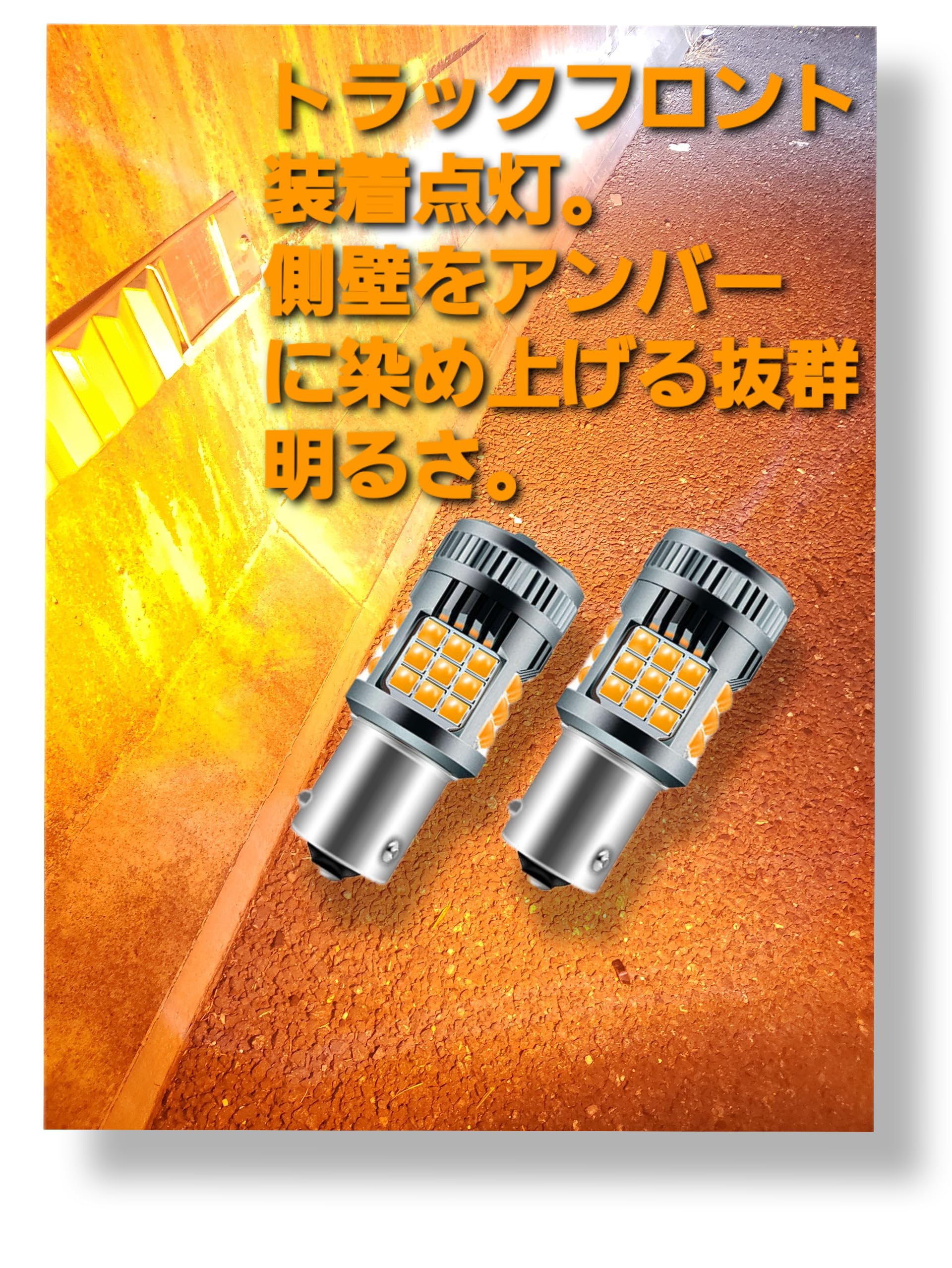 トラック対応 S25150° BAU15S シングル 平行ピン 抵抗内臓 アンバー LED ウィンカー バルブ (ポン付けOK)