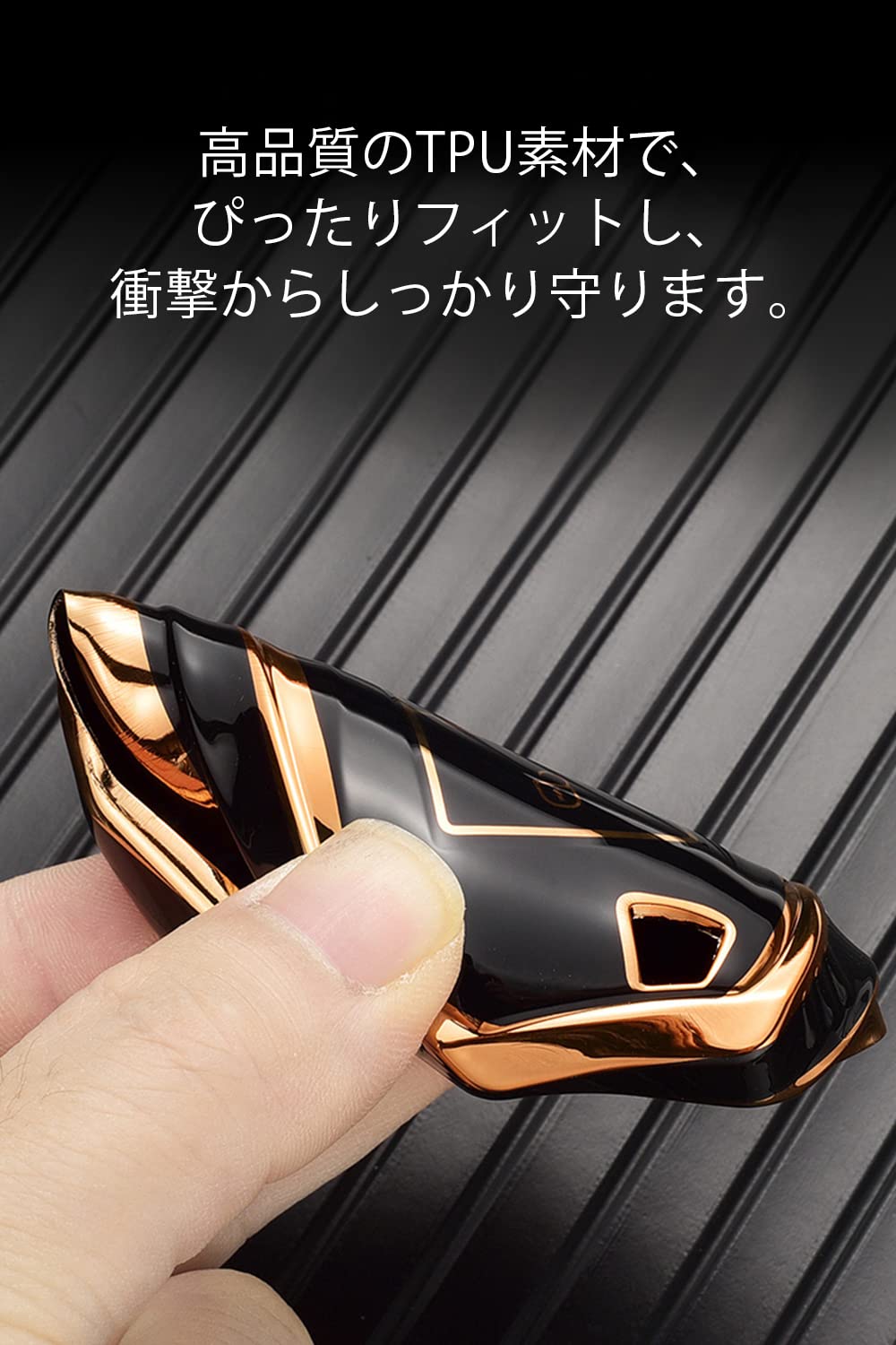 【TPU素材】高品質TPUシリコン素材を採用しており、摩擦に強く、割れにくく、軽くて長持ちし、車のキーをキズや摩耗を防止、全面的保護します。ユニークなゴールデンラインデザインがキーケースをよりファッショナブルにします。前面と背面だけでなく、隅々まで完全にカバーします。 車の鍵を効果的に保護でき、転倒防止、耐衝撃、傷防止、防塵性に優れています何気なくスマートキーを出すだけで周りの注目を集めます。