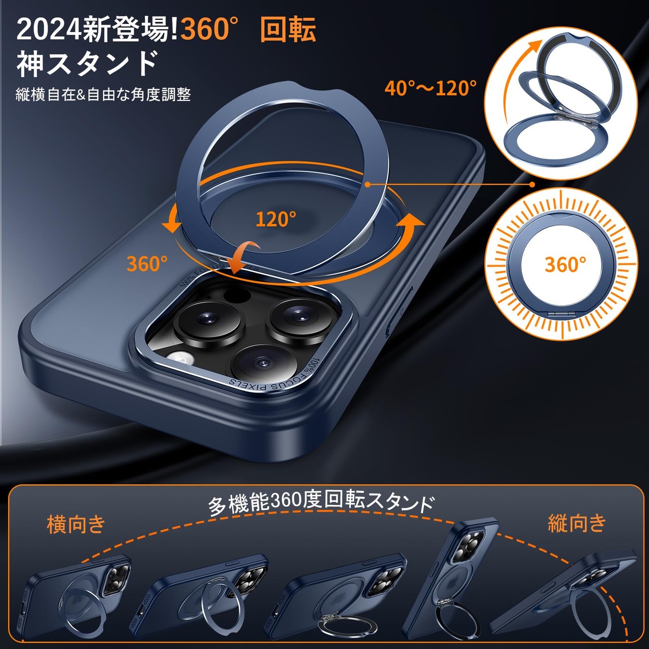 【多機能360度!縦も横も思いのまま!】:背面に搭載された嵌め込み式リングは、安定したアルミ合金製の円形スタンドを採用しており、従来のリングと比較して滑りにくく、安定したグリップを提供します。360°回転スタンド機能により、縦置き・横置きどちらの状態でも安定して利用でき、0°~ 120°の間で多角度自由に調整できます。動画視聴やFaceTimeを利用する際には、両手を解放し。外出先でも手軽に使用でき、リングやスタンドを持ち歩く必要がない。ケースを開けるだけでスタンドの完成!指にかければリングも便利に使用でき!ケースを閉じれば背面はスマートに平坦に。無限の使い方が可能で、機能性を重視する方にはぜひ手に取ってみてください!【 iphone 13 Pro 用 ケース アイフォン13Pro 用 ケース アイホン13プロ 用ケース】