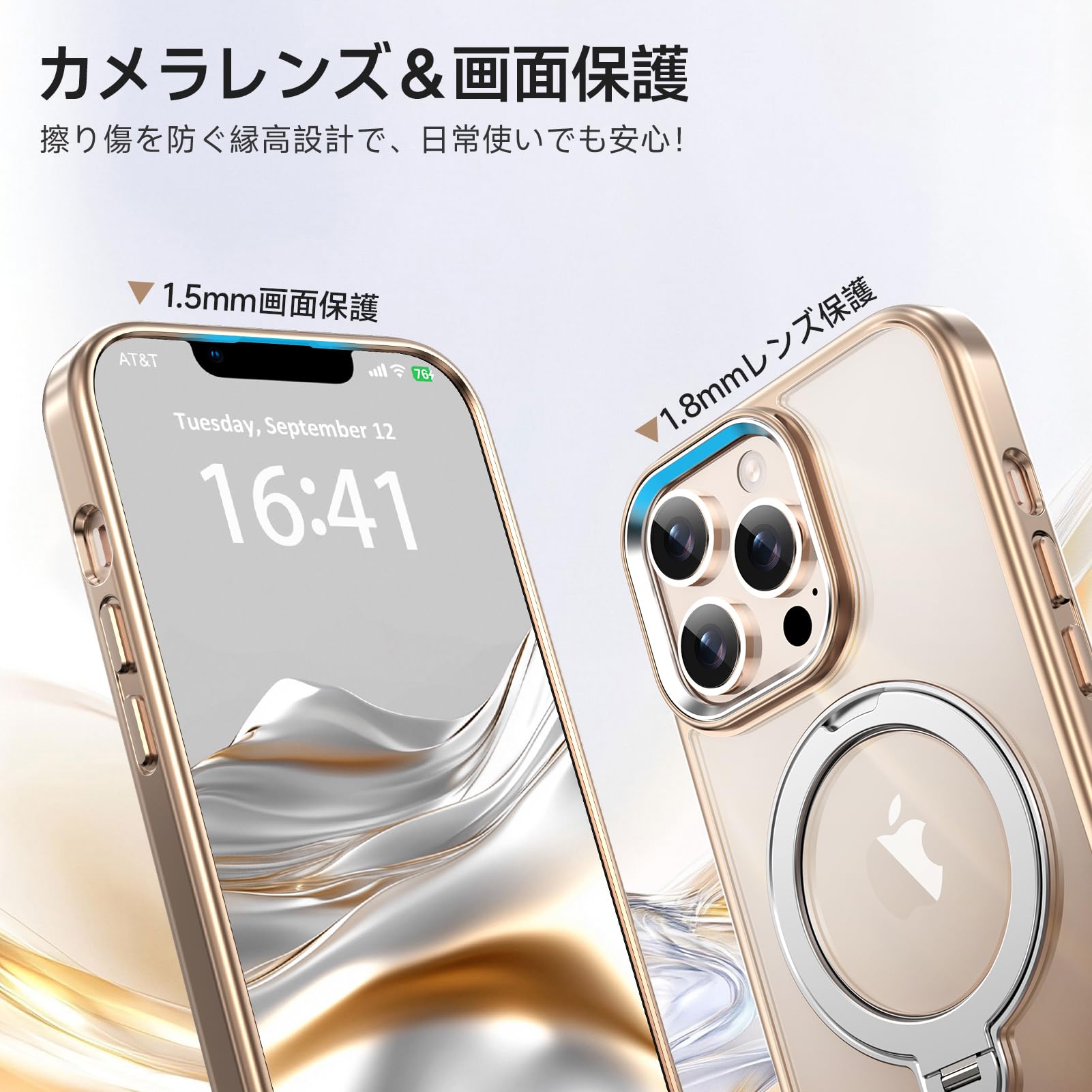 【最新!耐久性UP!360度回転スタンド】この iPhone 13 ProMax 用 ケースには、最新の360度回転スタンドが搭載されており、縦横の角度を0°?170°で自由に調整できます。市販のスタンドが横置きに対応できないという欠点を完全に解消しました!動画視聴やビデオ通話時に、最適な角度を簡単に設定でき、横置きの不便さを解消します。さらに、強力なベアリングを採用し、リング部分の耐久性が大幅に向上しました。最大10倍の耐久性を実現し、長期間使用することができます。片手で操作でき、便利さと耐久性を兼ね備えた優れたアイテムです。