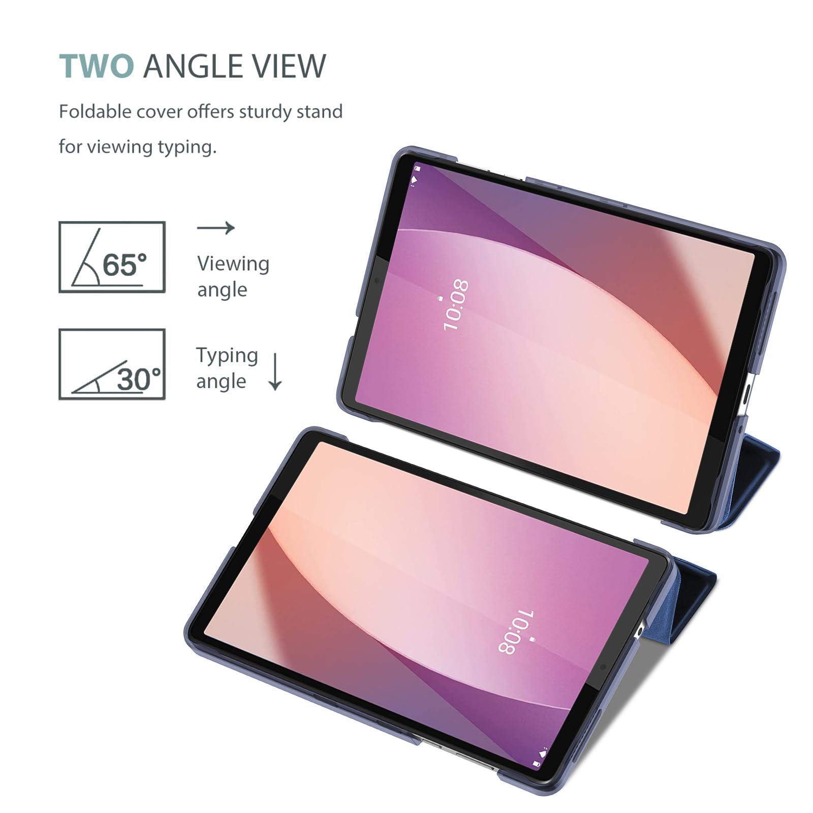 ProCase レノボ Tab M8 (4th Gen) 2023発売/NEC LAVIE Tab T8 8インチ 保護ケース 軽量 三つ折り オートスリープ/ウェイク対応 スタンドカバー 半透明バックカバー 対応機種:Lenovo Tab M8 (4th Gen) 2023発売(ZABU0172JP)/NEC LAVIE Tab T8(TAB08/H04)-ネイビー