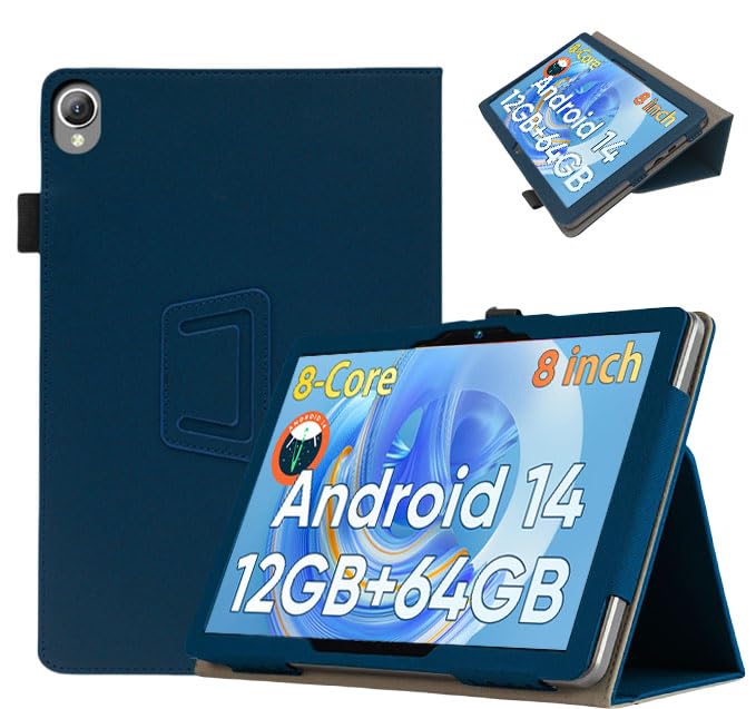 For N-one NPad Mini ケース 角度調整 上質PUレザー キズ防 薄型 軽量 擦り傷防止 折り畳み 全面保護型 横開き マグネット内蔵 着脱簡単 N-one NPad Mini 8インチ専用 ケース カバー (ブルー)