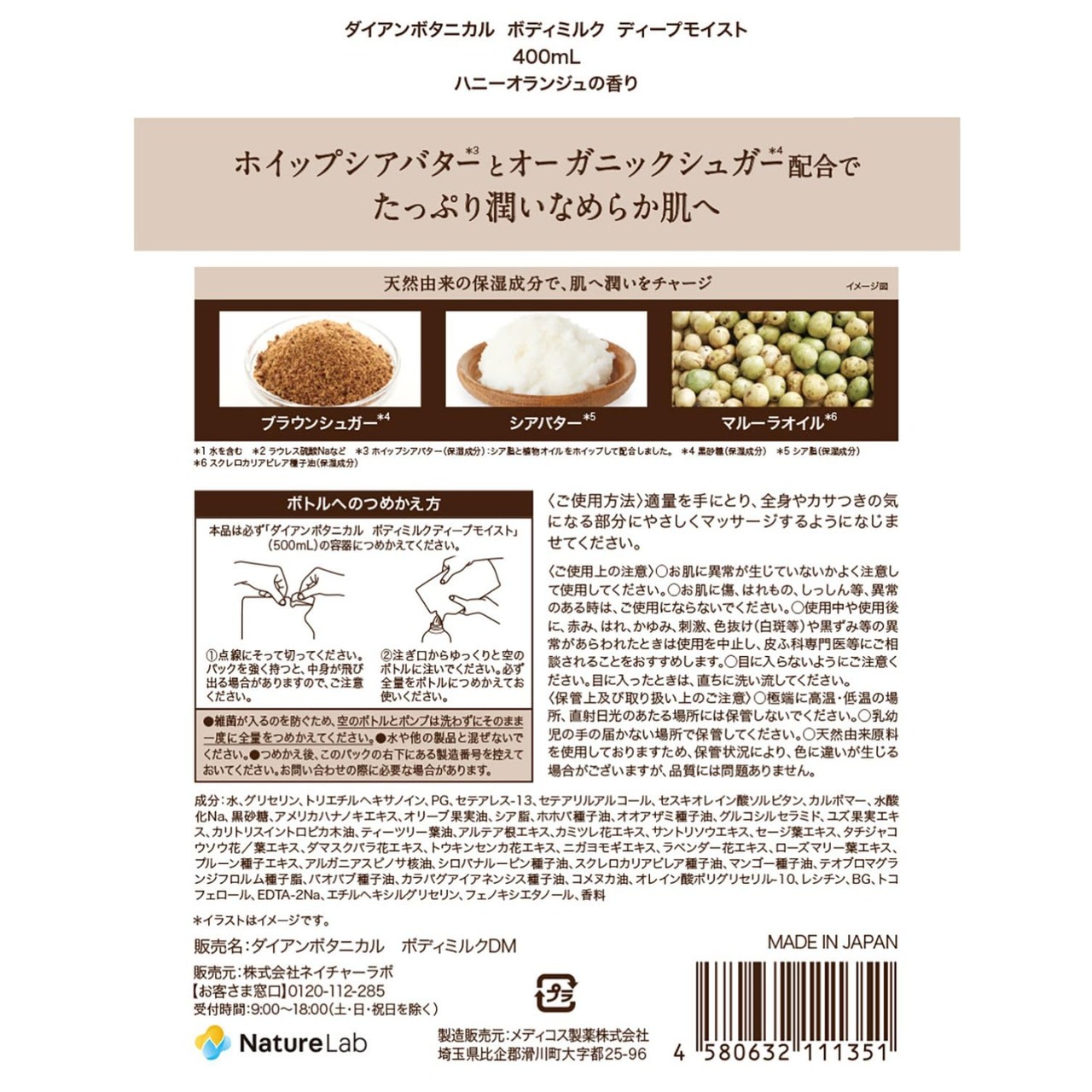 Diane BOTANICAL(ダイアン ボタニカル) ボディミルク [ハニーオランジュの香り] 詰め替え 400ml【敏感肌もリッチに潤う】ダイアンボタニカル ディープモイスト ふつう 400ミリリットル (x 1)