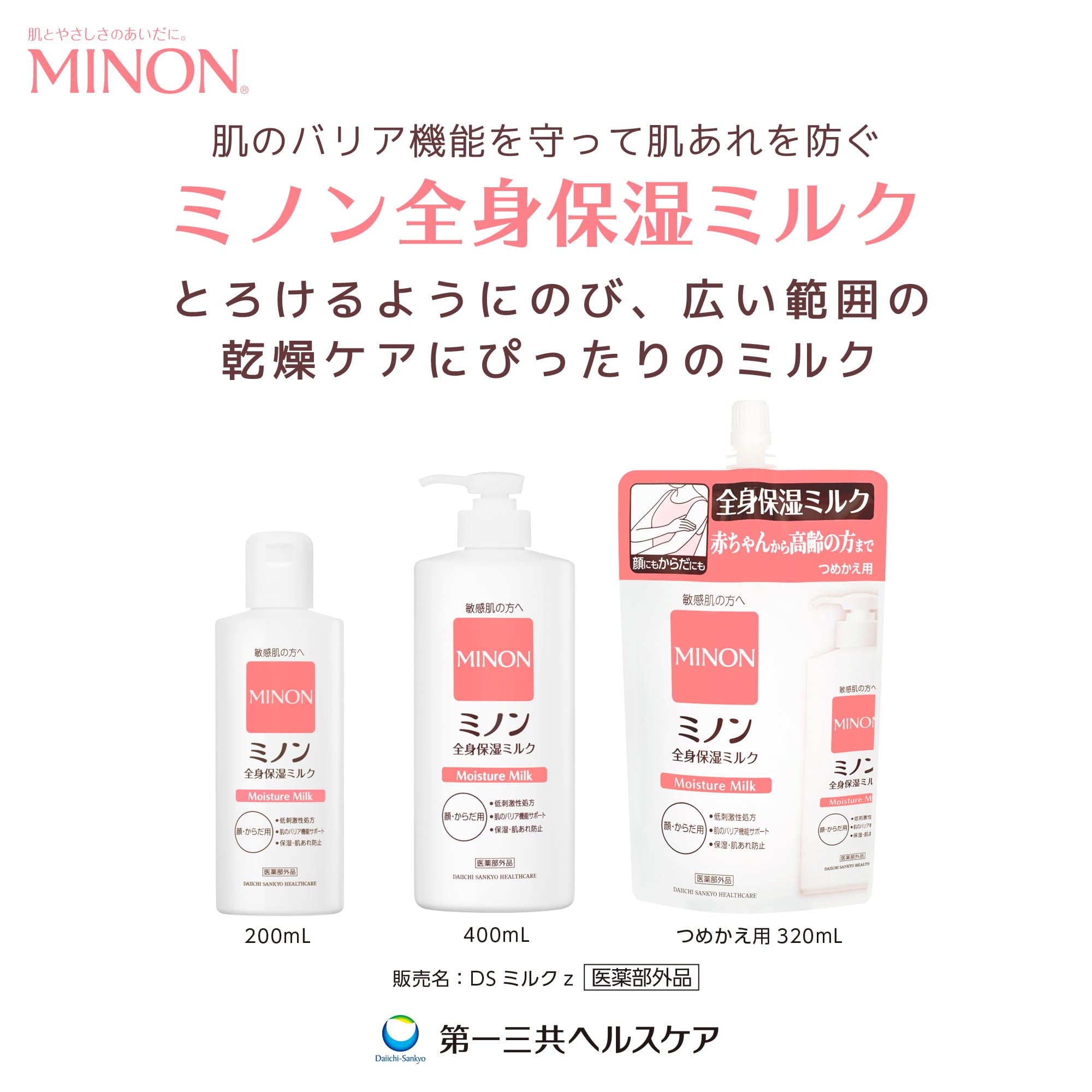 ミノン全身保湿ミルク 本体ボトル 400mL 大容量 ボディミルク 敏感肌 肌あれ防止 保湿 乾燥対策 弱酸性 低刺激性 【医薬部外品】