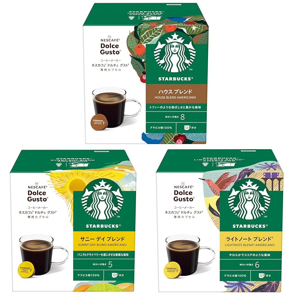 【セット買い】スターバックス ハウス ブレンド ネスカフェ ドルチェ グスト 専用カプセル 12P×1箱【 レギュラー コーヒー 】 + スターバックス サニーデイ ブレンド ネスカフェ ドルチェ グスト専用カプセル12P×1箱【 レギュラー コーヒー 】 + スターバックス ライトノートブレンド ネスカフェ ドルチェ グスト 専用カプセル 12P【 レギュラー コーヒー 】