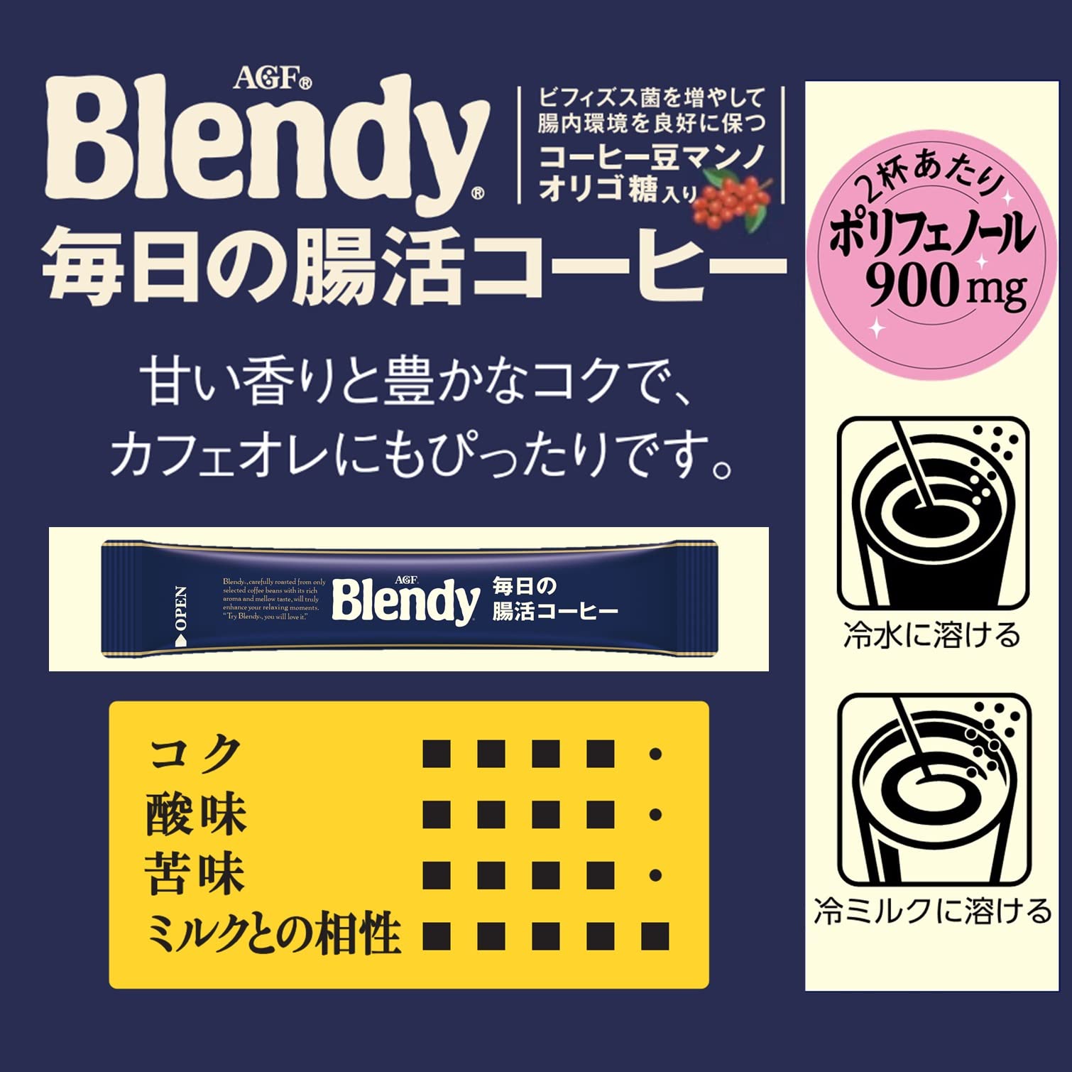 AGF ブレンディ スティックブラック 毎日の腸活コーヒー 56本 【 インスタント 】【 水に溶ける 】 【 マンノ オリゴ糖 】