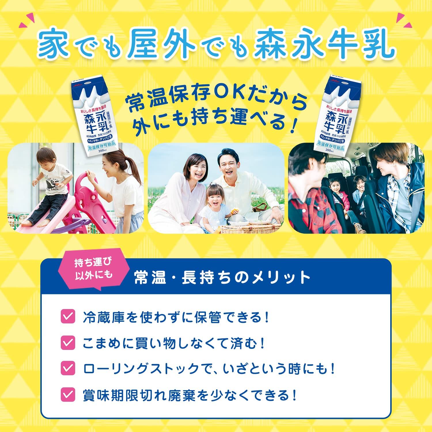 【家でも外でも森永牛乳】常温保存可能な牛乳です。