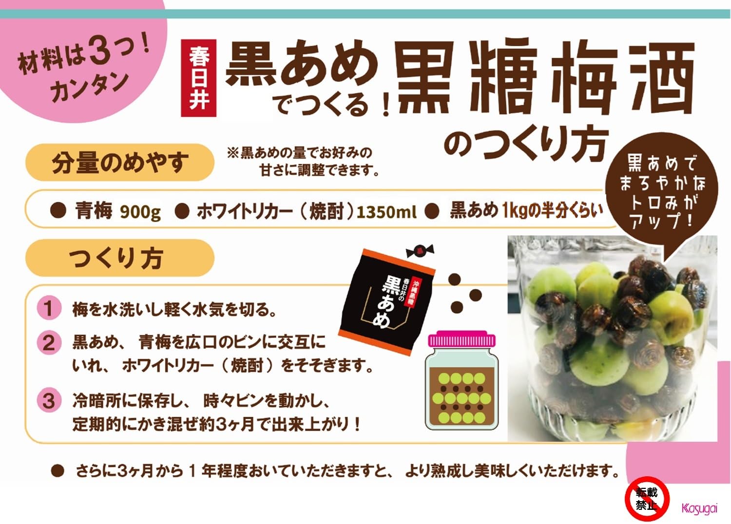 原材料:砂糖(国内製造)、水あめ、黒糖(沖縄産)、食塩/カラメル色素、乳化剤、調味料(アミノ酸)、(一部に大豆を含む)