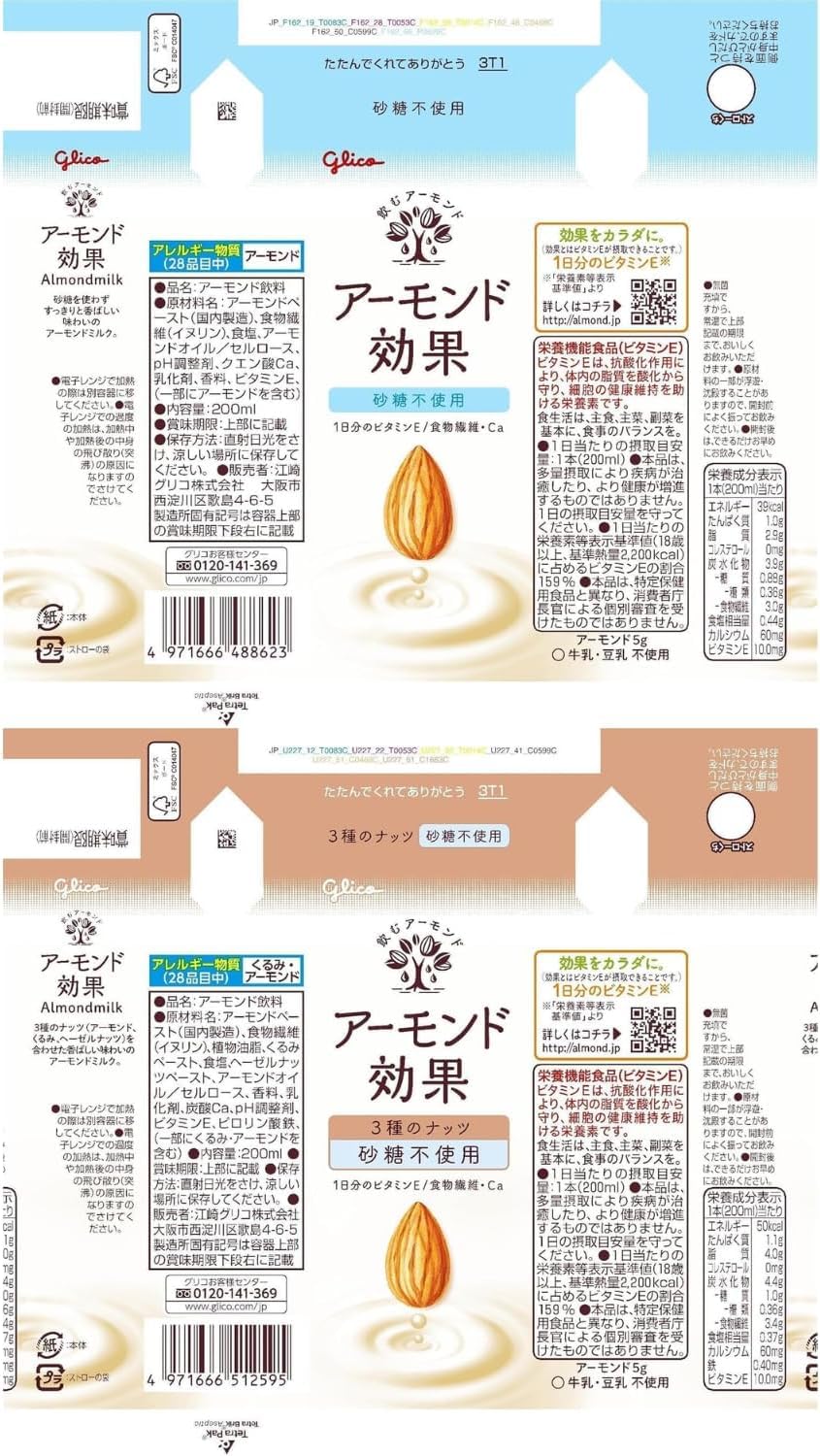アーモンド効果 砂糖不使用アソートセット 200ml×12本 江崎グリコ 常温保存可能 ビタミンE 食物繊維 アーモンドミルク