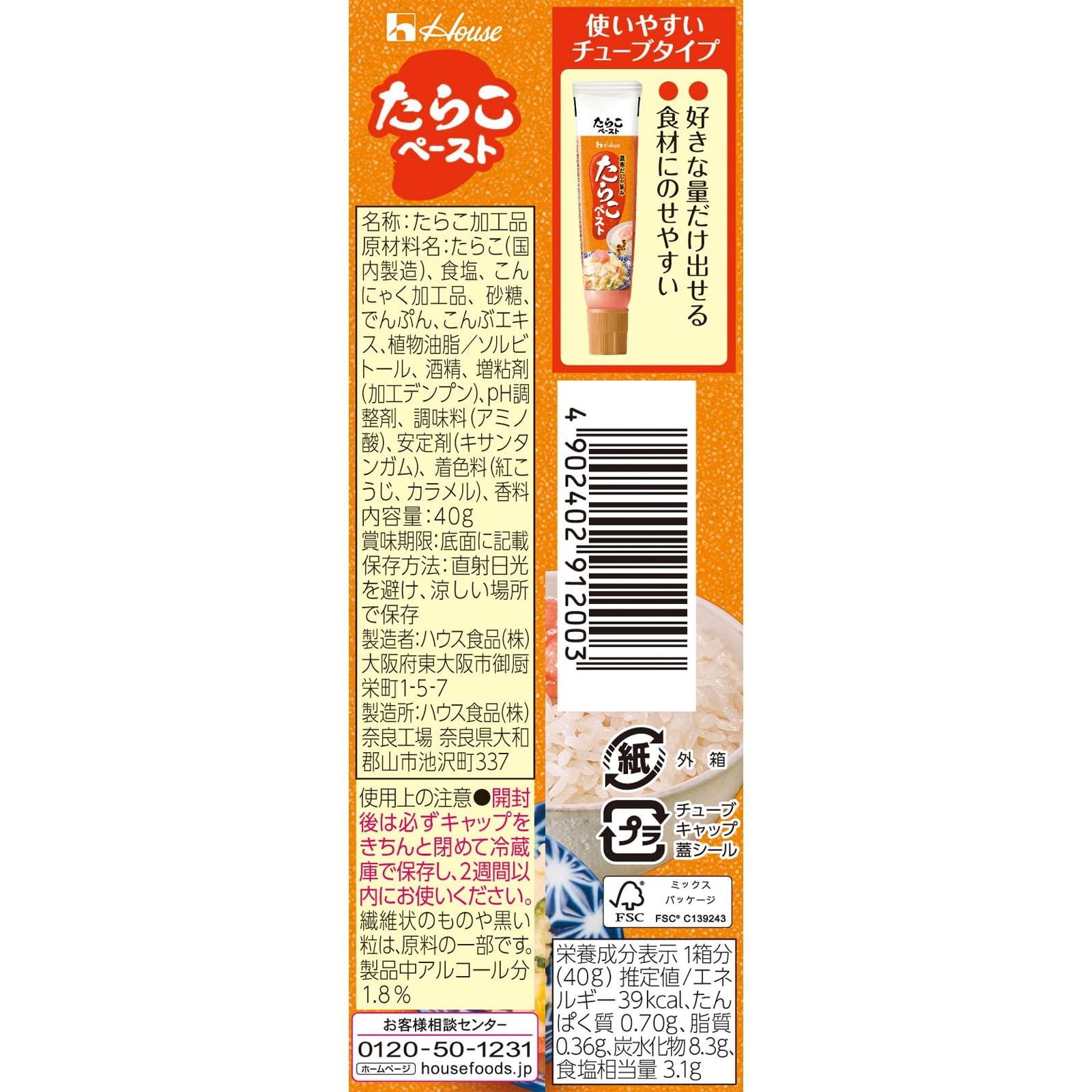 House ハウス たらこペースト 40g ×5個 [あえる、のせる、使い勝手が良いチューブタイプ]