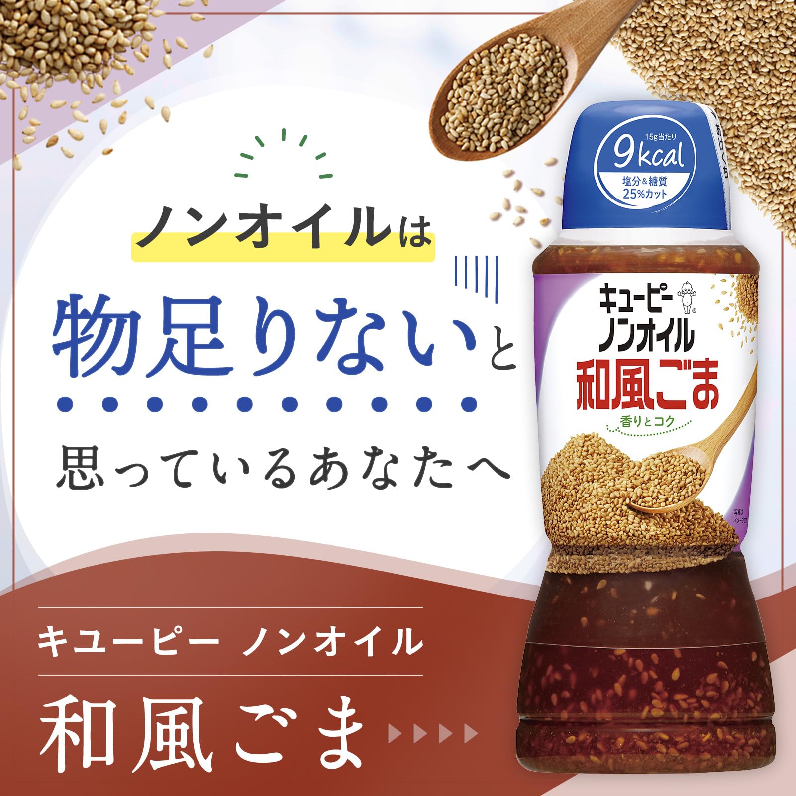 【在庫処分】キユーピー ノンオイル和風ごま 380ml×3本 低カロリー サラダ