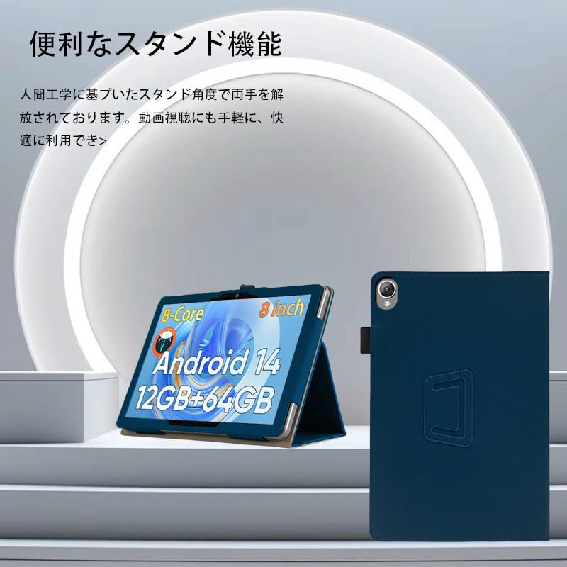 For N-one NPad Mini ケース 角度調整 上質PUレザー キズ防 薄型 軽量 擦り傷防止 折り畳み 全面保護型 横開き マグネット内蔵 着脱簡単 N-one NPad Mini 8インチ専用 ケース カバー (ブルー)